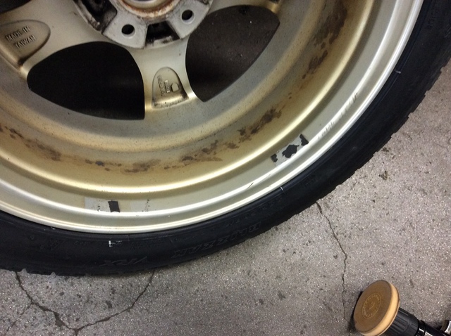 前に付いていたバランスウェイト(おもり)を取り外して、ウェイトを貼り付けていた「両面テープののり」をきれいに落とします。