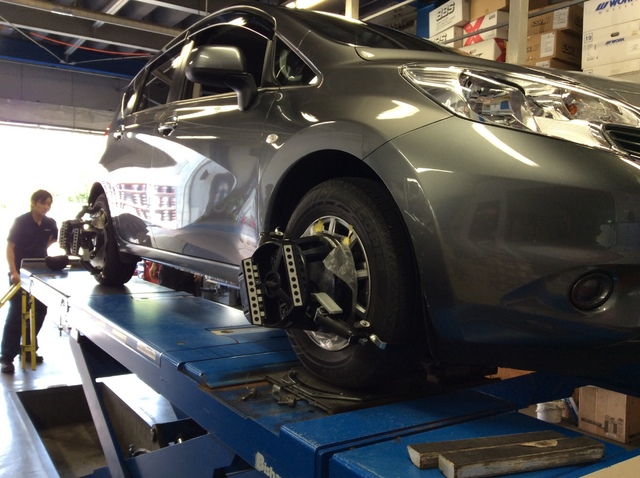 その他にも、NOTEがアライメント調整、なにやらバンパーが外されてハマってしまいそうな GT-Rが。
