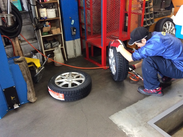 今日もスタッドレスタイヤの装着が進んでいます。
