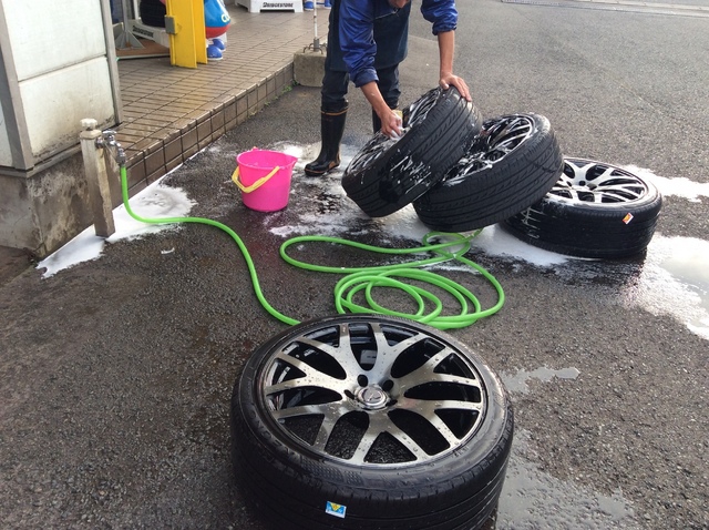 いつものように、外したタイヤ・ホイールを洗っています。