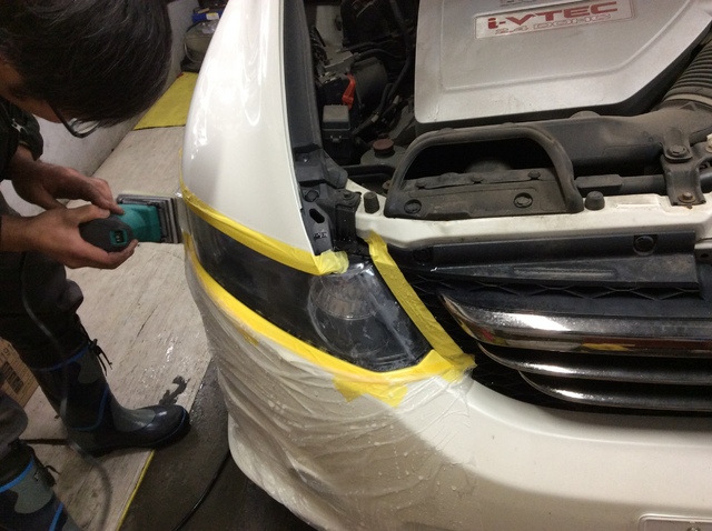 キャンペーン中のヘッドライト磨きの作業もありました。