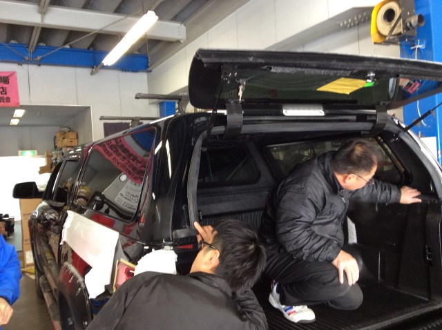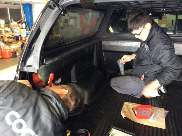 ルームランプとブレーキランプの配線加工をしています。