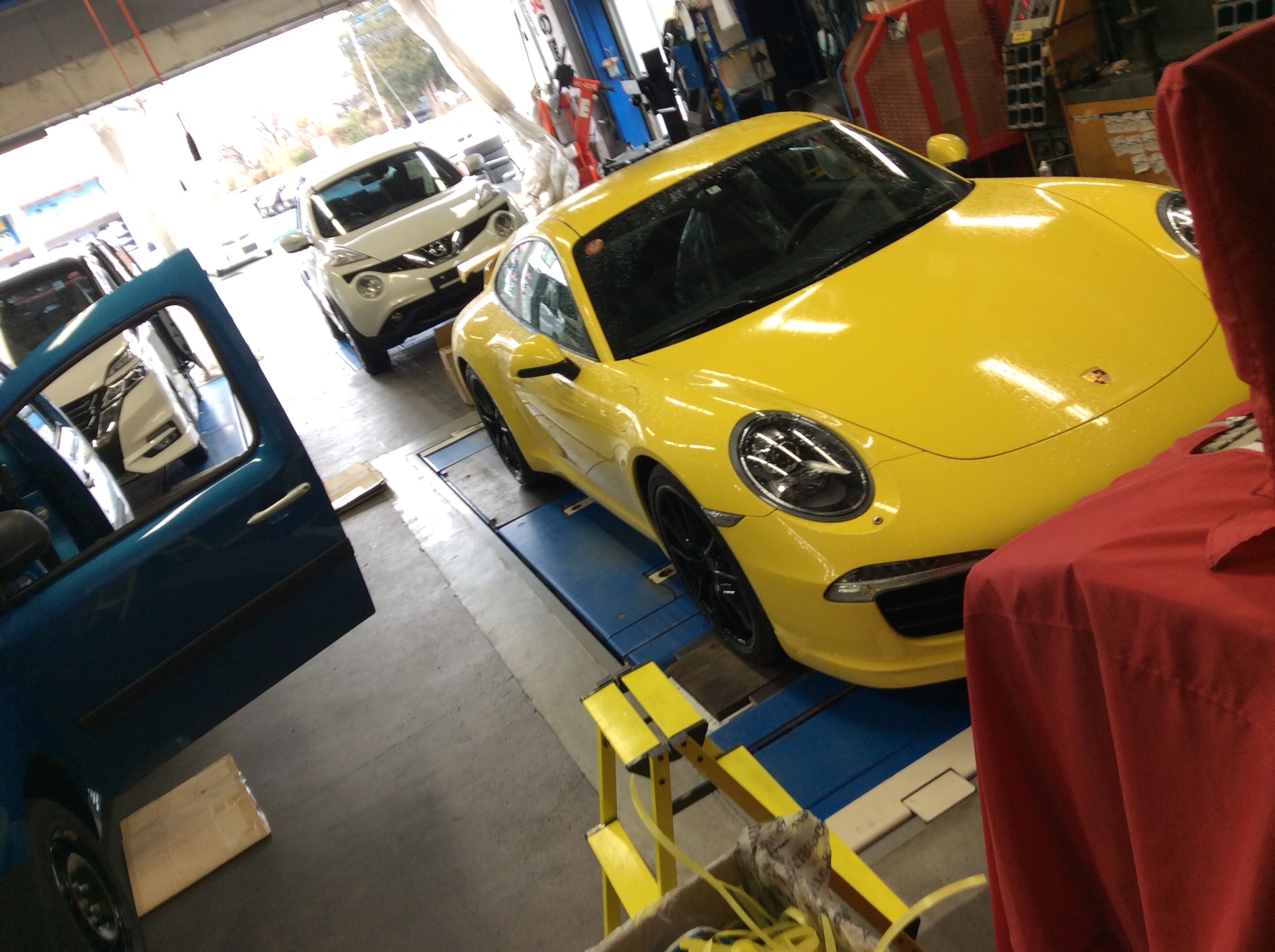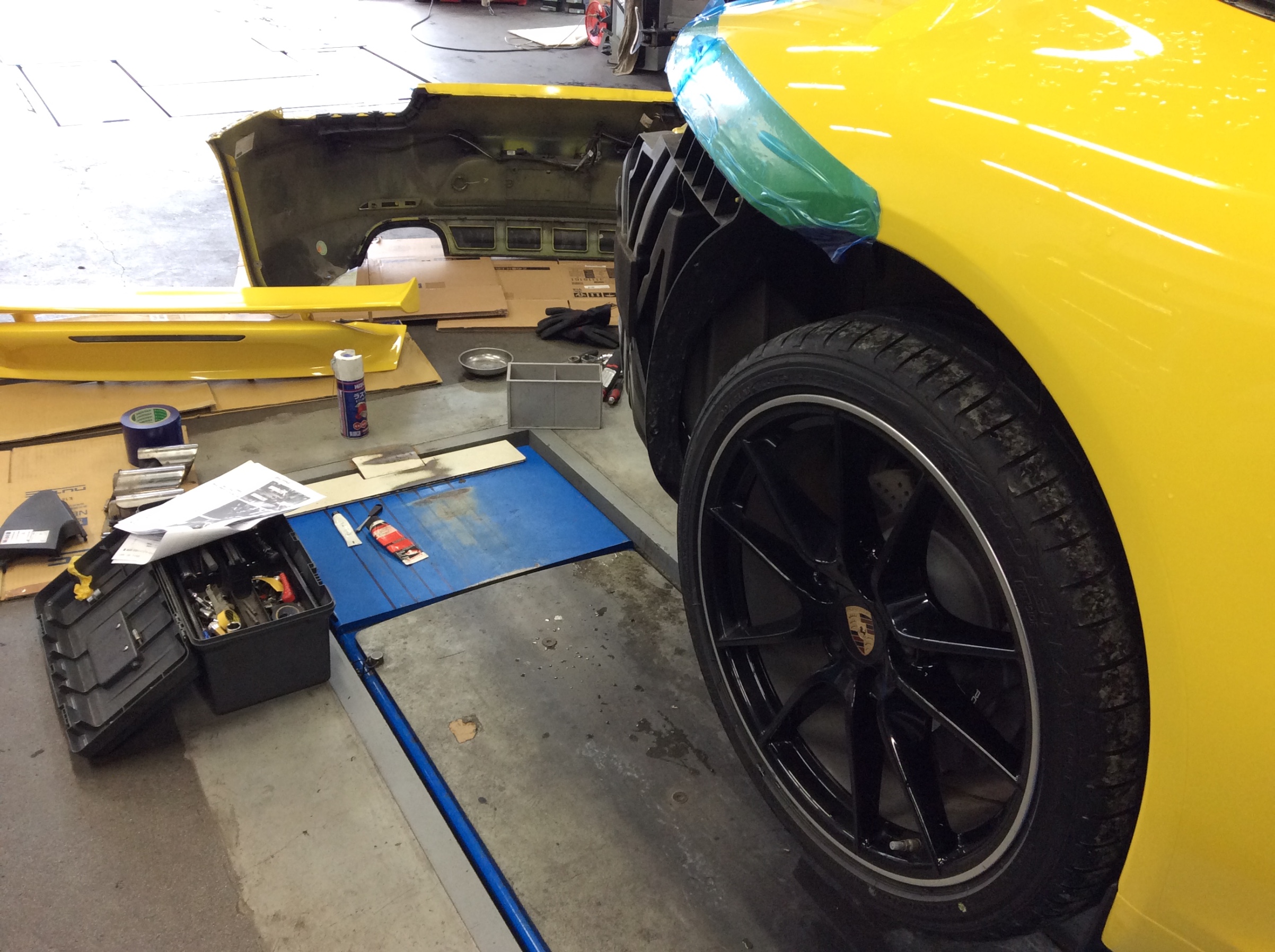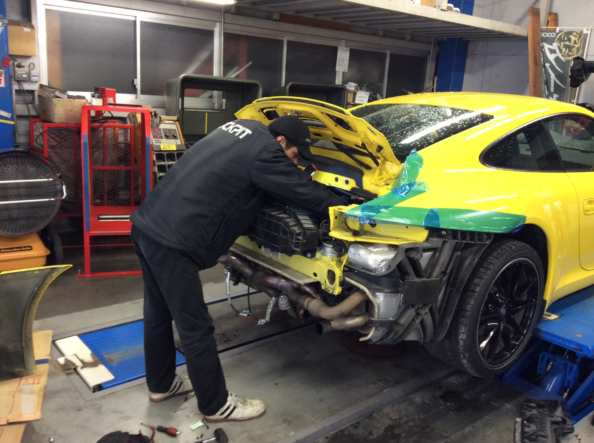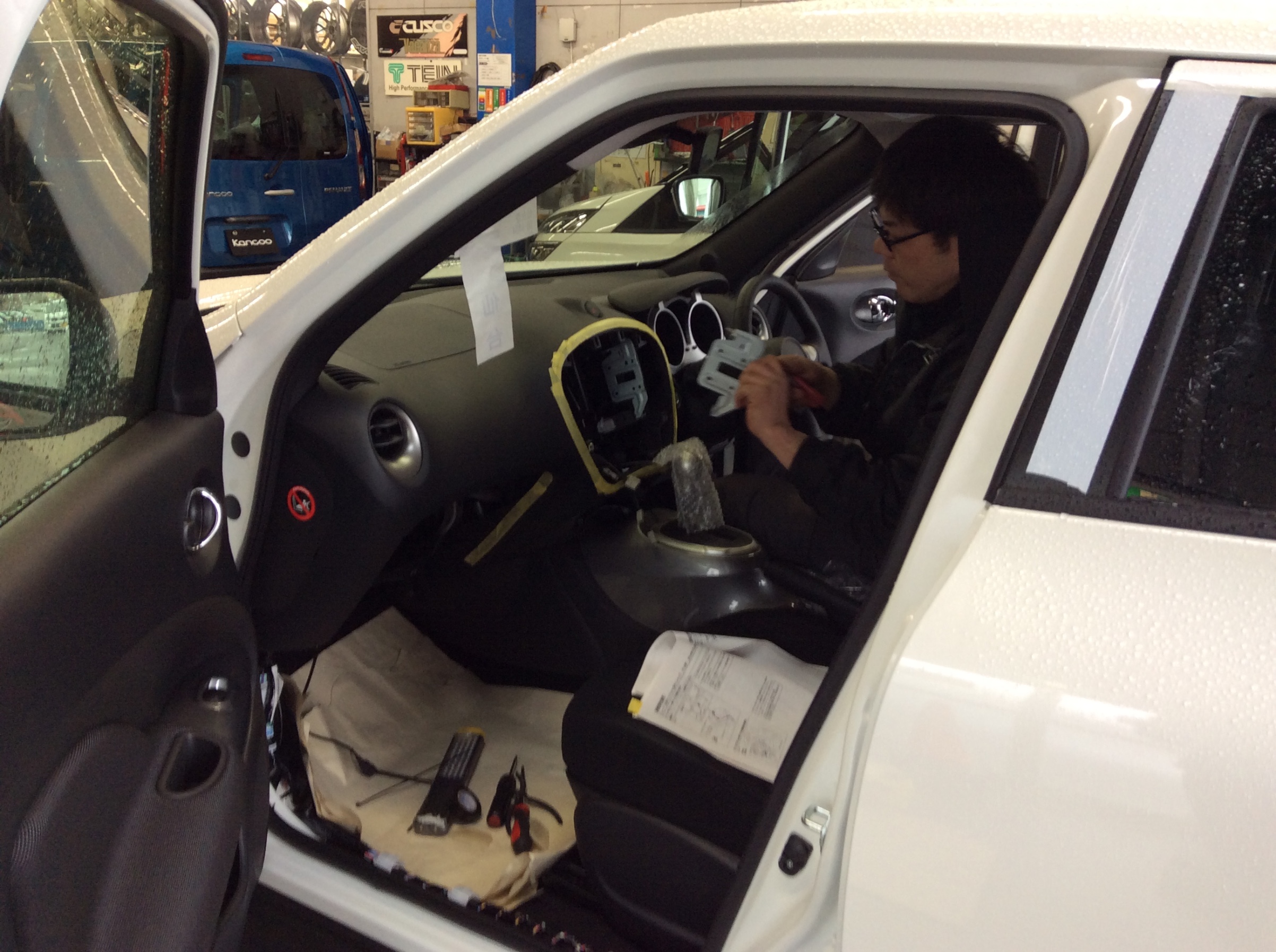晴れていれば外で出来る作業も、今日は全部ピットの中で進めています。