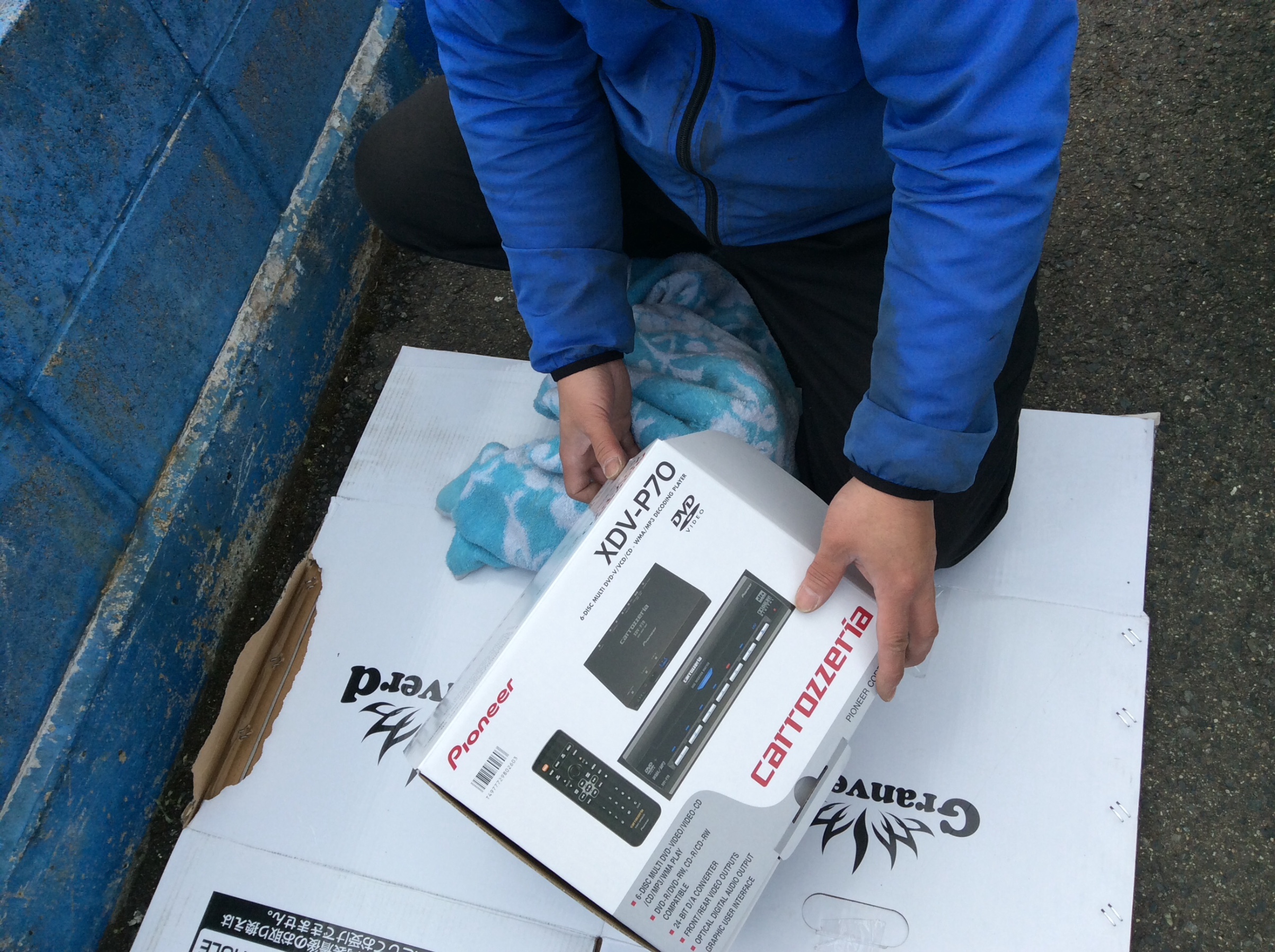 せまい車内にいろいろレイアウトを考えて作業していきます。
