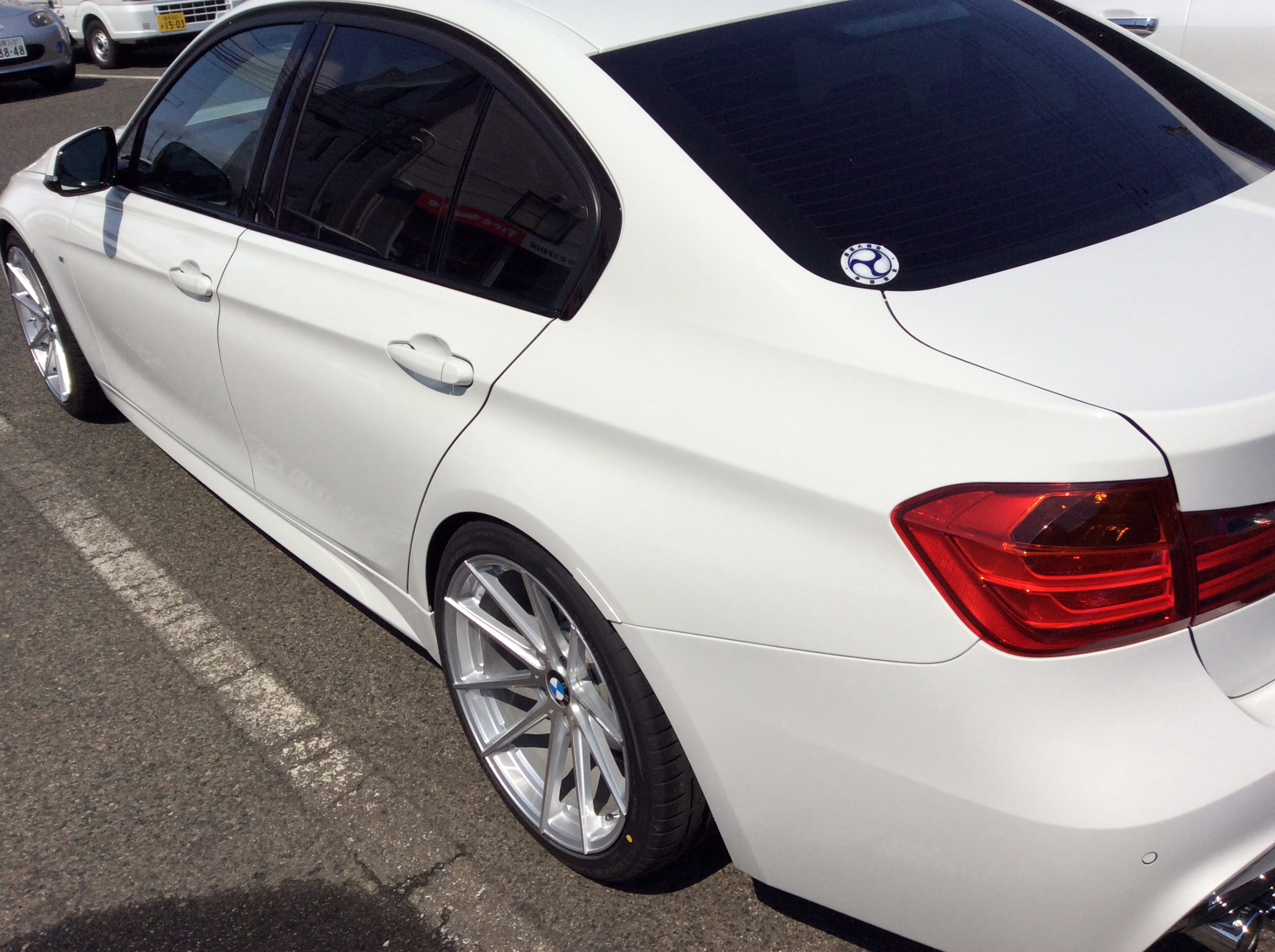こちらも19インチにインチアップしたら車高が気になって、車高を調整したBMW320iです。