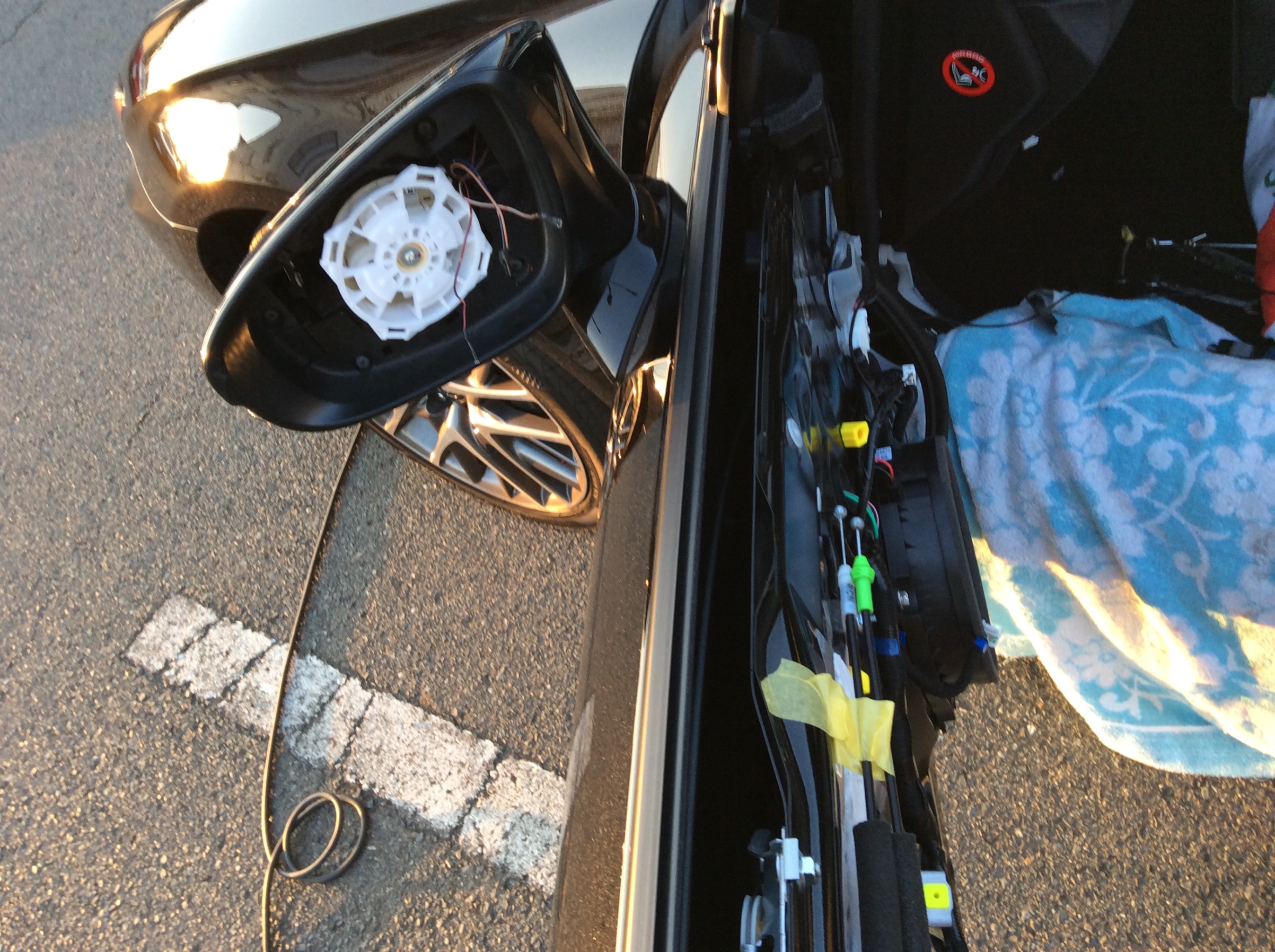 ドアと車体のあいだにハーネスを通すところが無いんですね。