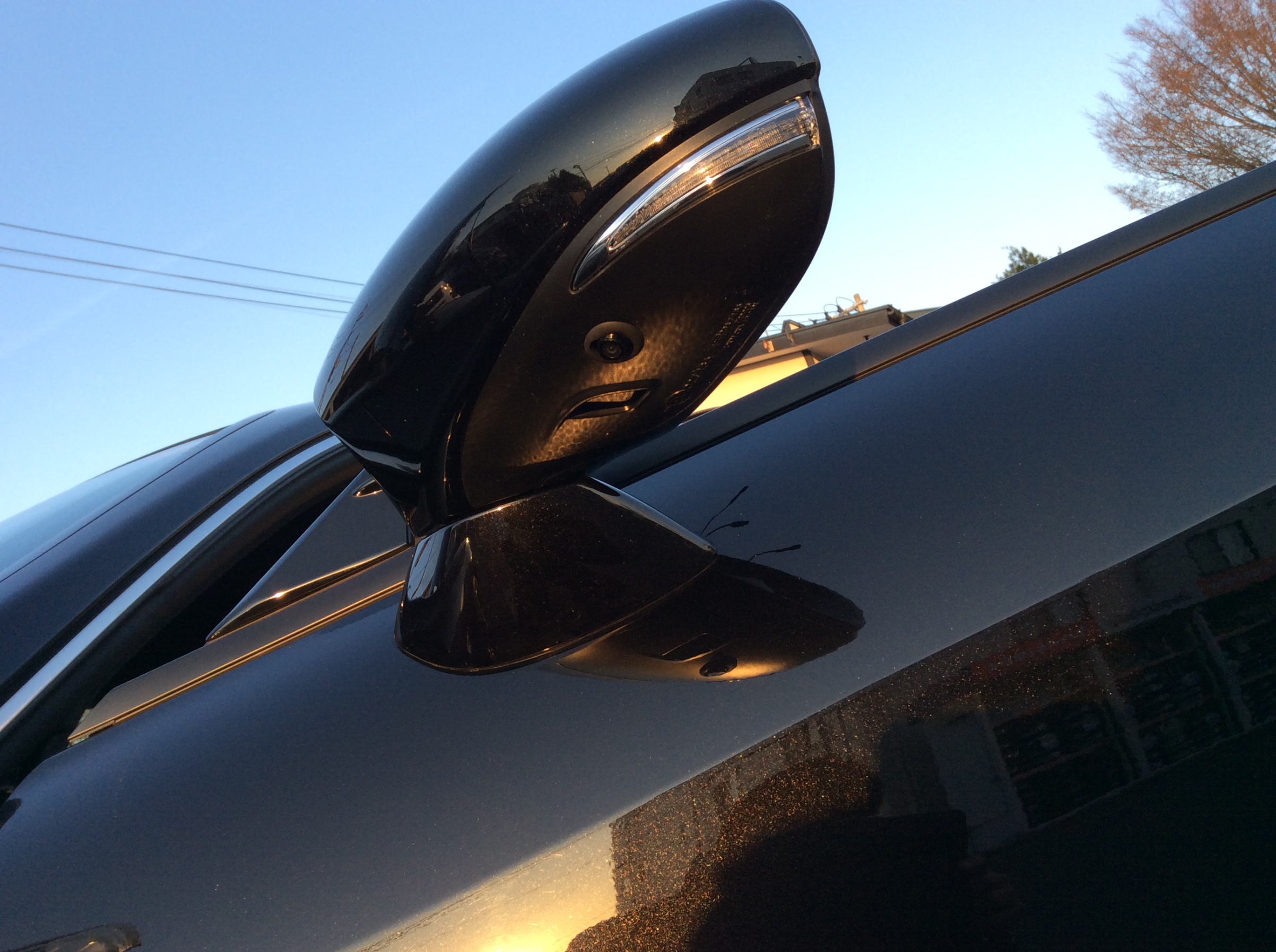 レクサスRC350のドアミラーの下側に小型のカメラを埋め込みます。