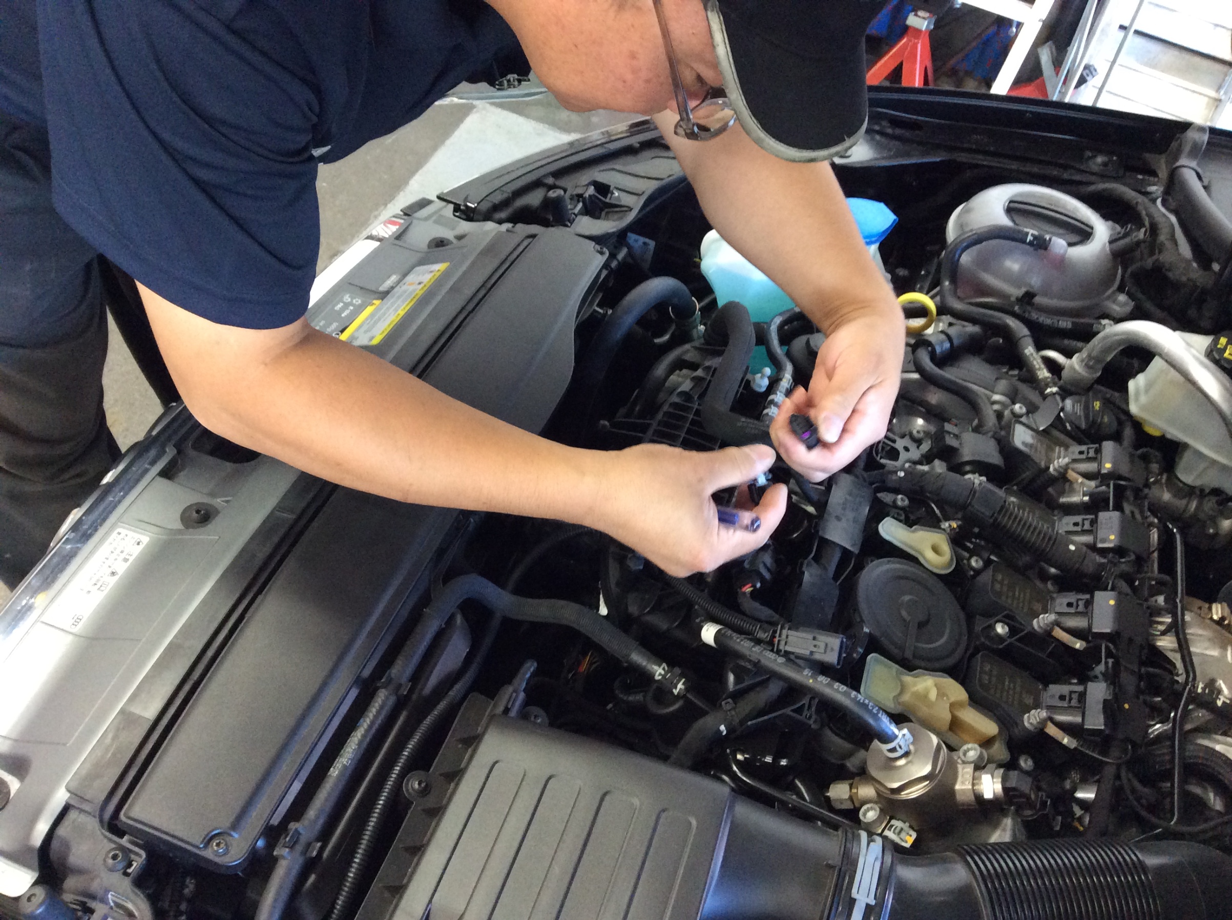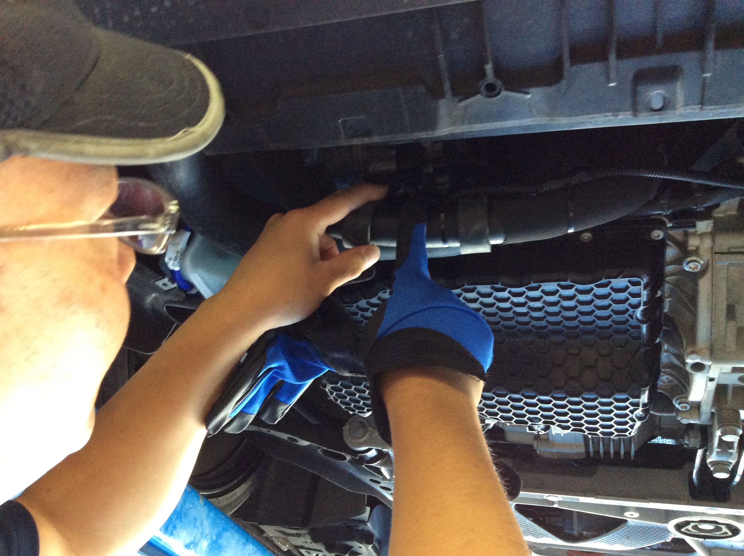 PPE は簡単に付くイメージですが、今回はいつもと違っておクルマの下にも潜り込んでいました。