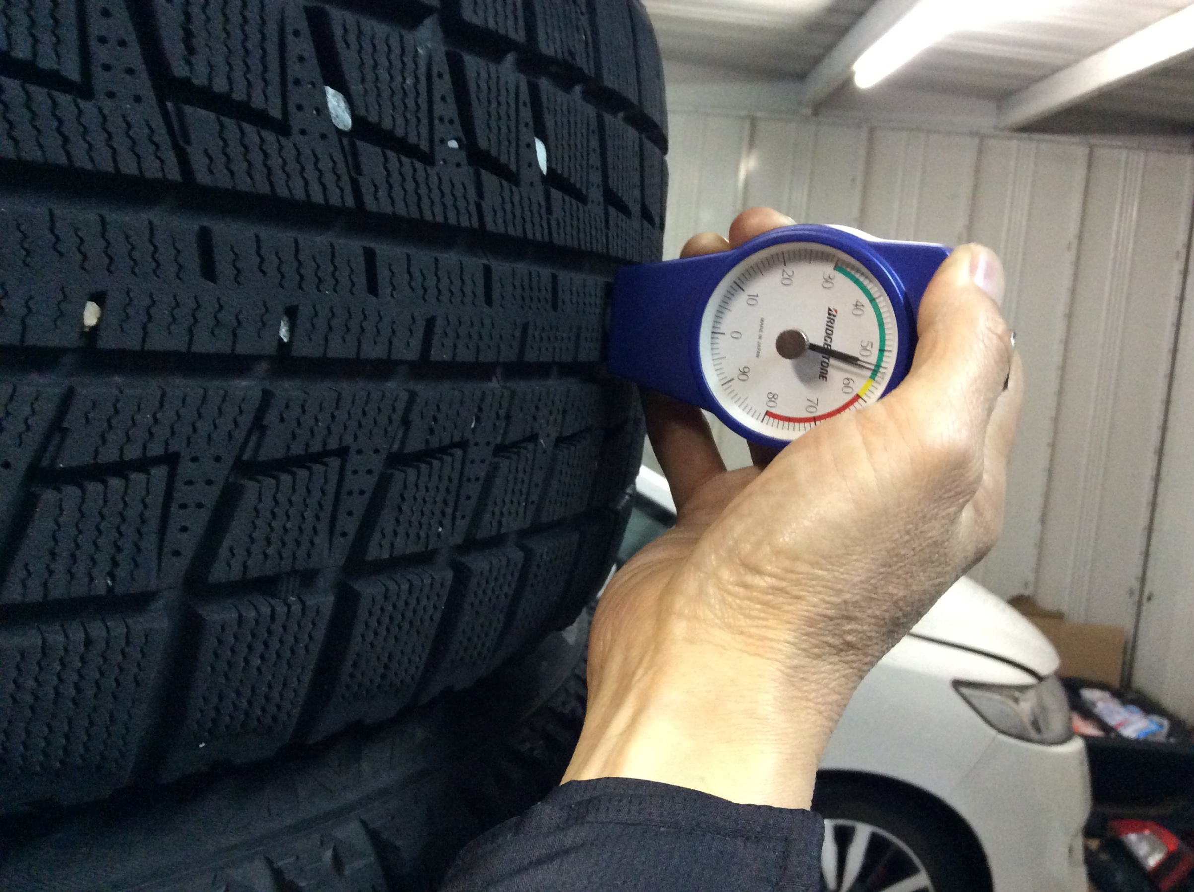 そのまま装着した方は本格的なアイスバーン状態の路面になる前に、タイヤの柔らかさの点検にもいらして下さいね。