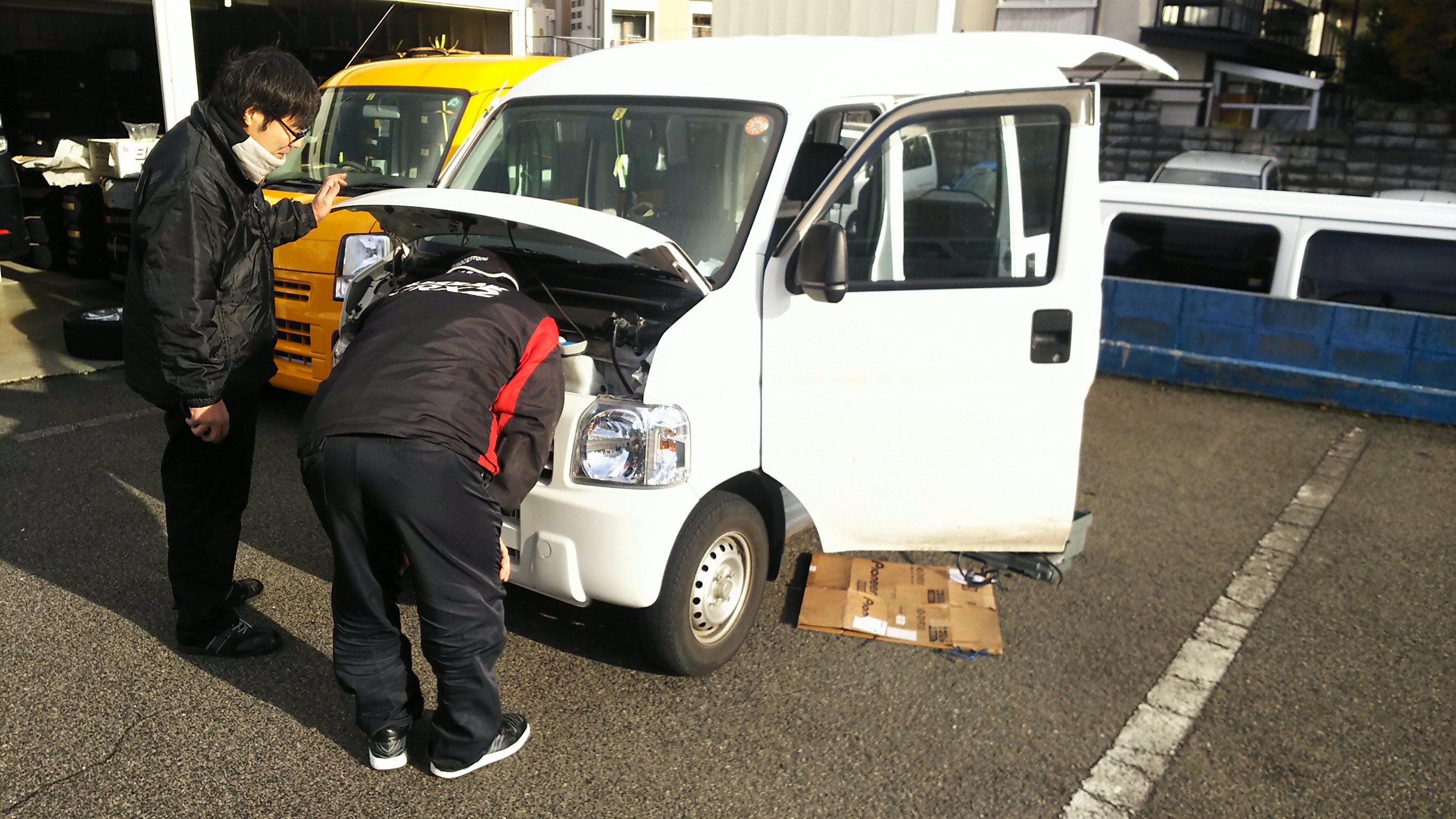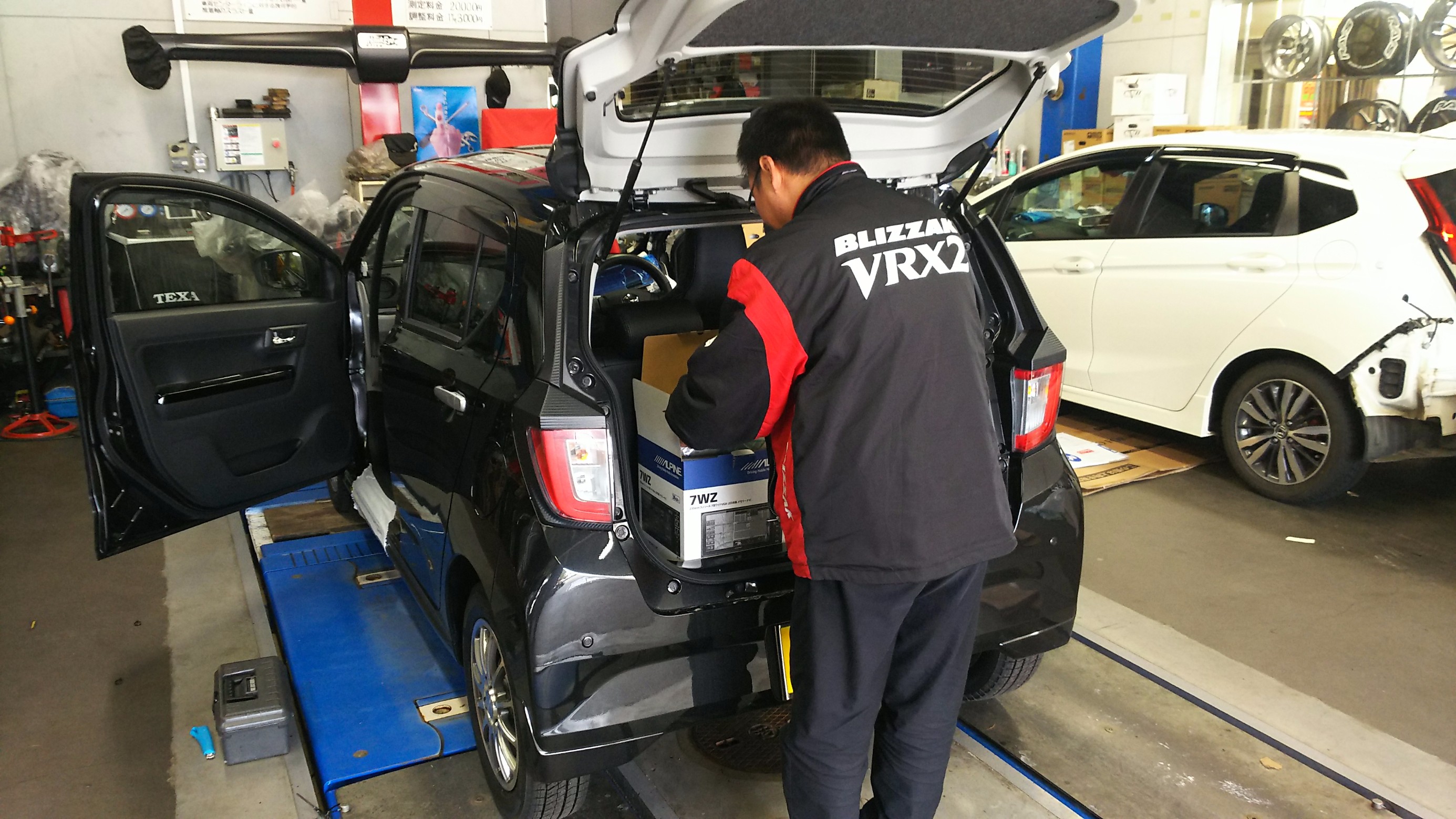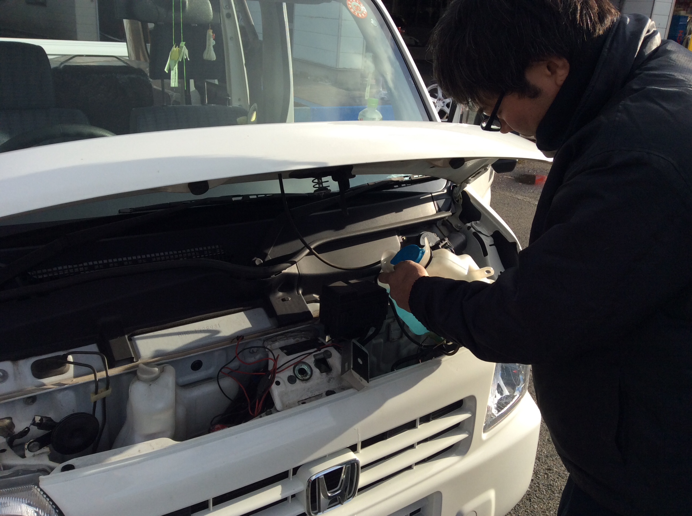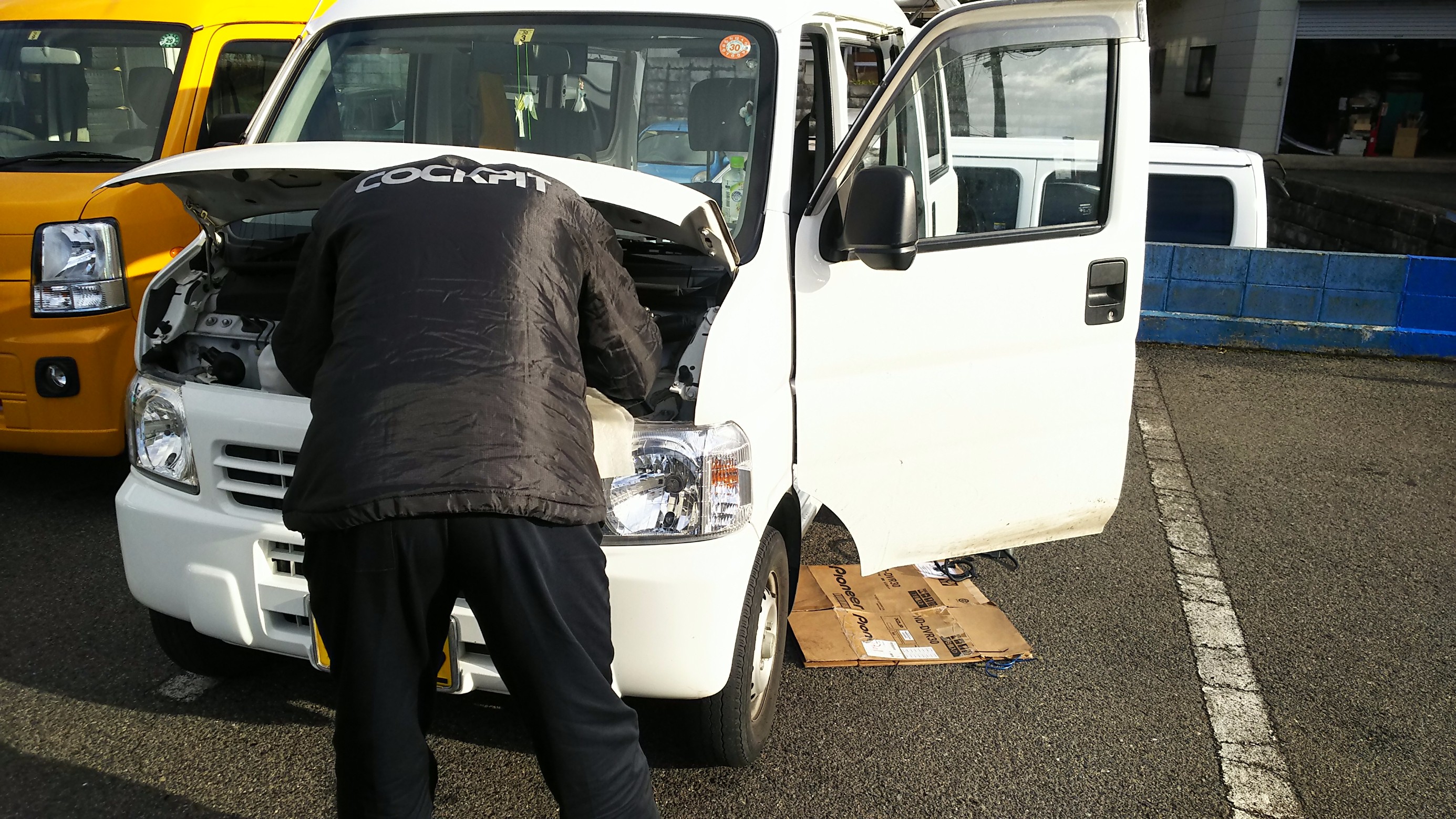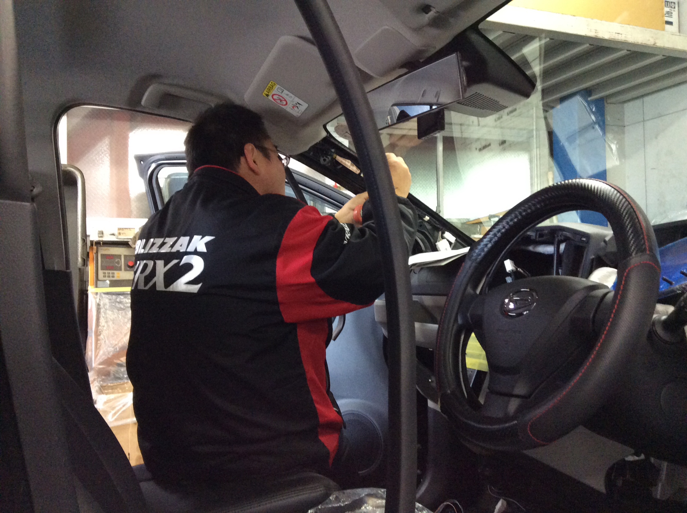 チーフ 白川は ミライースにナビ&フロントカメラを取り付けています。