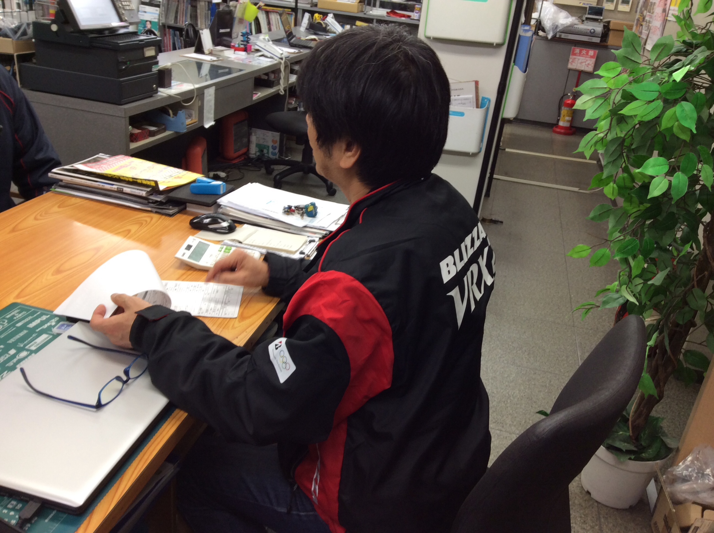 店内で接客中の後ろ姿です。普段はこの姿がほとんどかな。