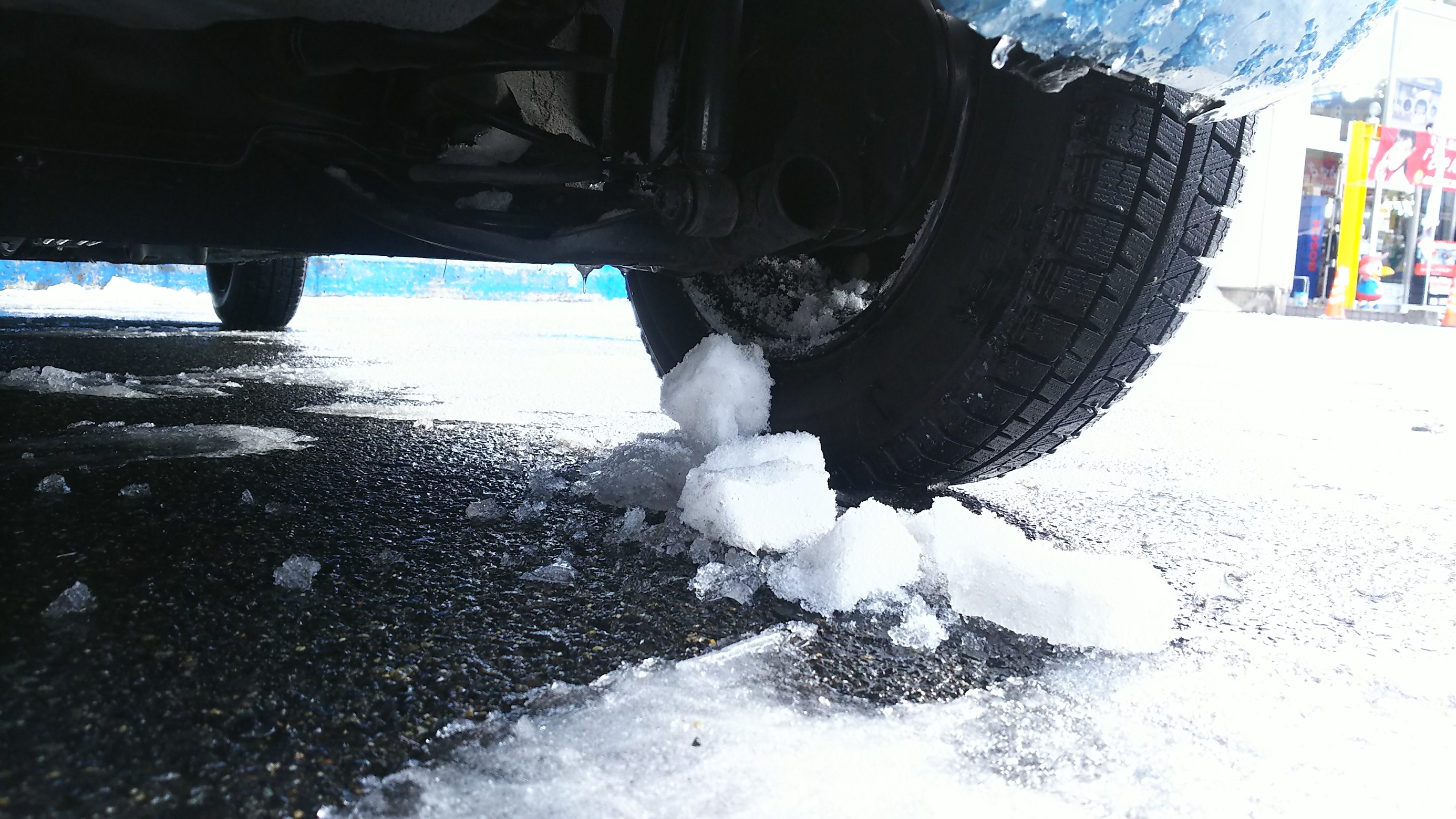 ちなみに以前、4WDのお車で「運転席の下でガラガラする!」と見てみると、プロペラシャフトとボディの間に氷が挟まっていたこともありましたね。