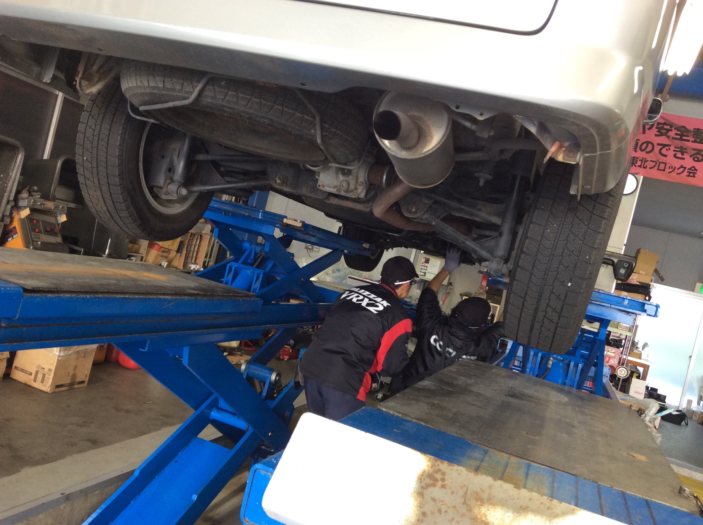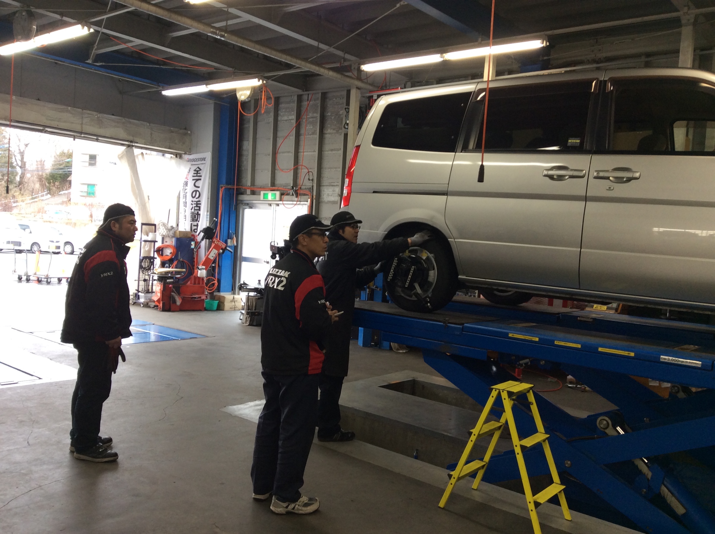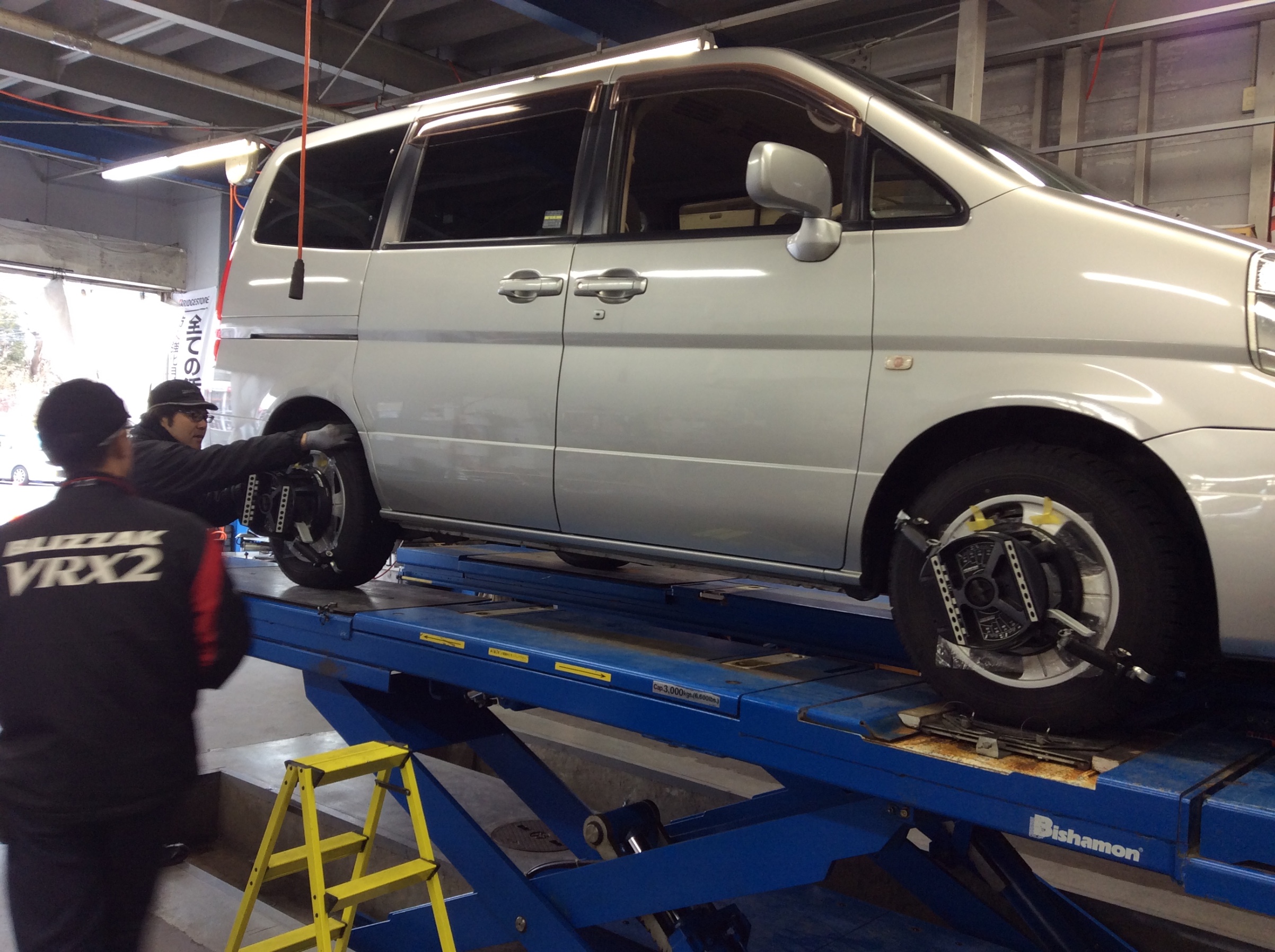 アライメント調整の途中ですが、もちろんお客様のおクルマが最優先!