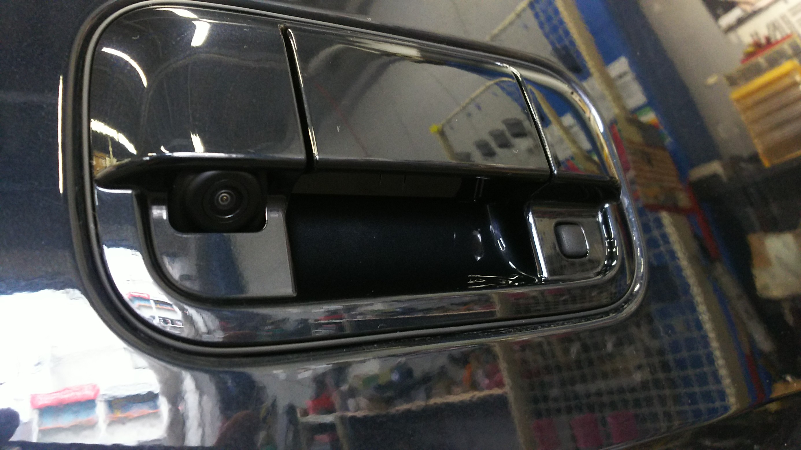 リヤカメラは、純正部品のカメラ付き用ゲートハンドルを取り寄せ、アルパインのRCAタイプ「HCE-C1000」を装着です。