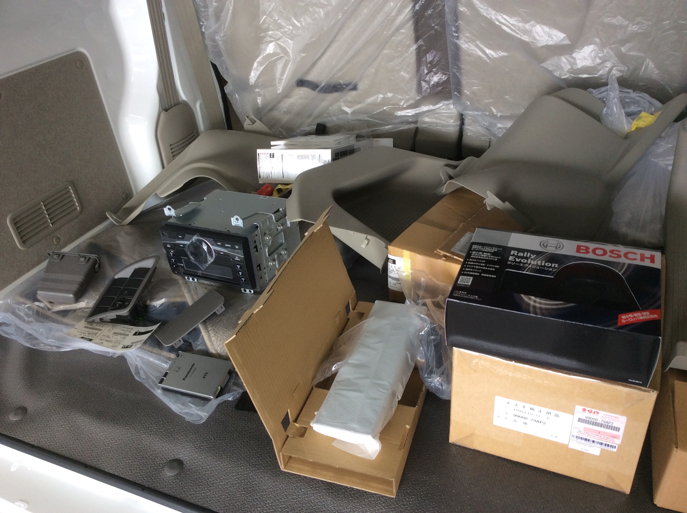 レーダー・ETC・ホーンなど、取付け予定の品々がイロイロあります。