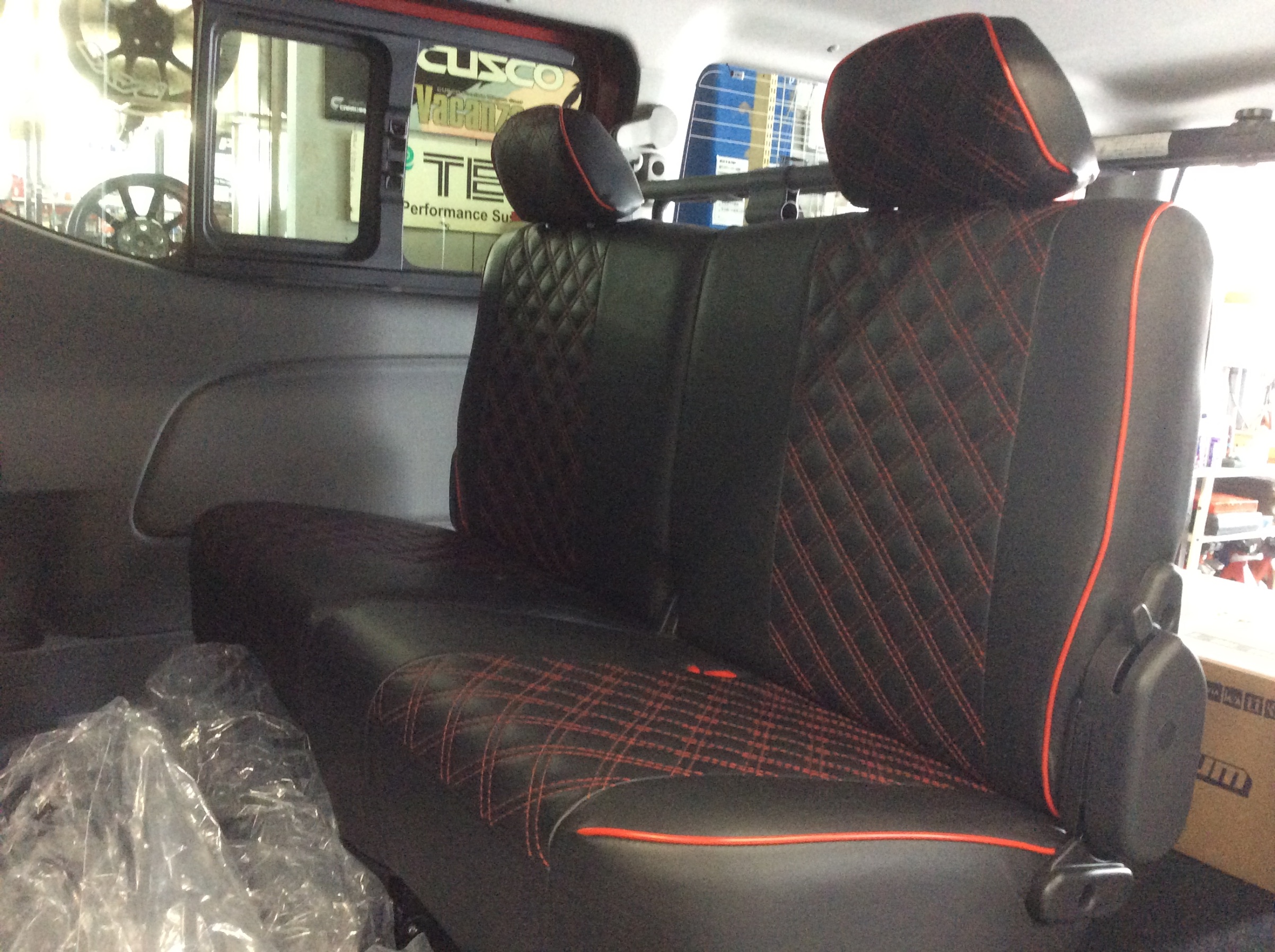 リヤシートにはシートカバーも取り付けて。