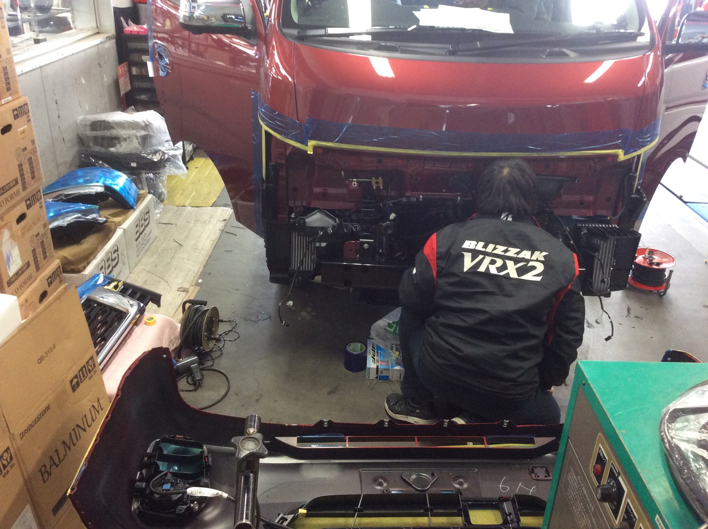 まずはグリルと、バンパーを外して?