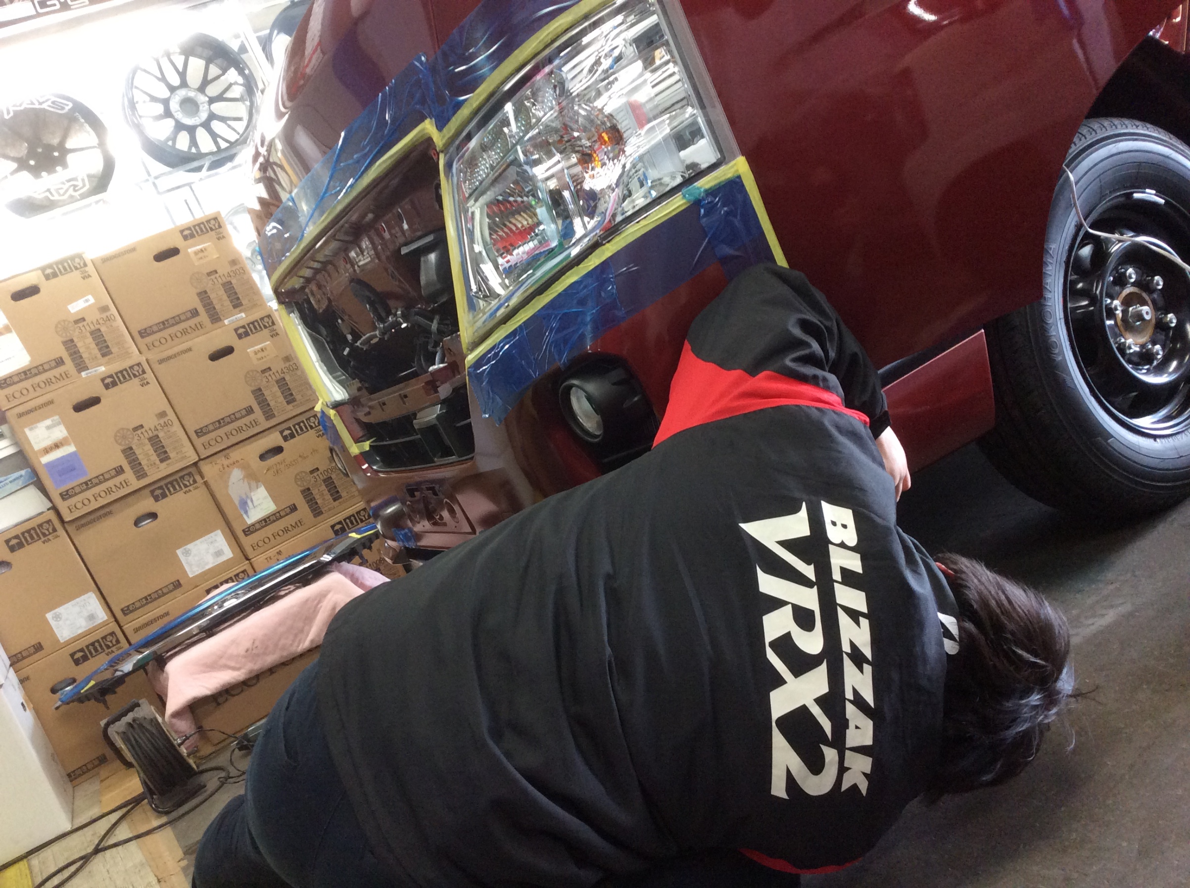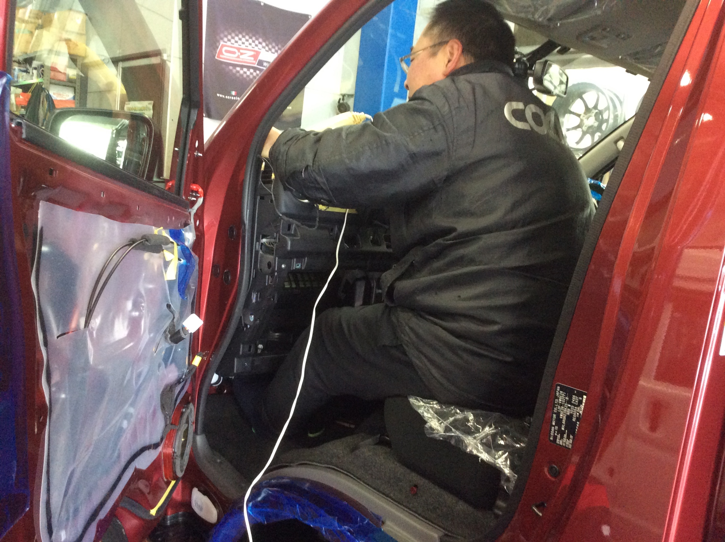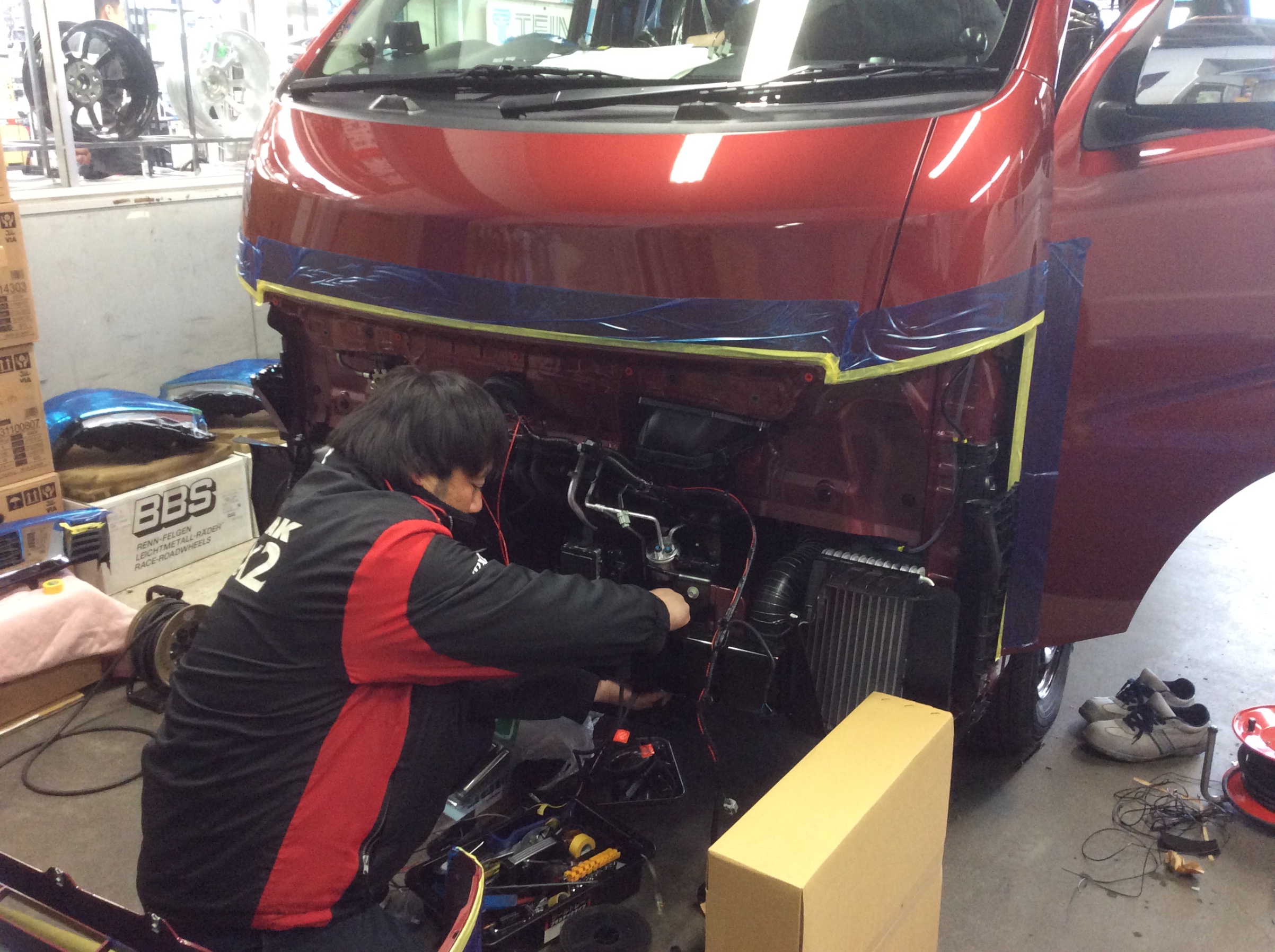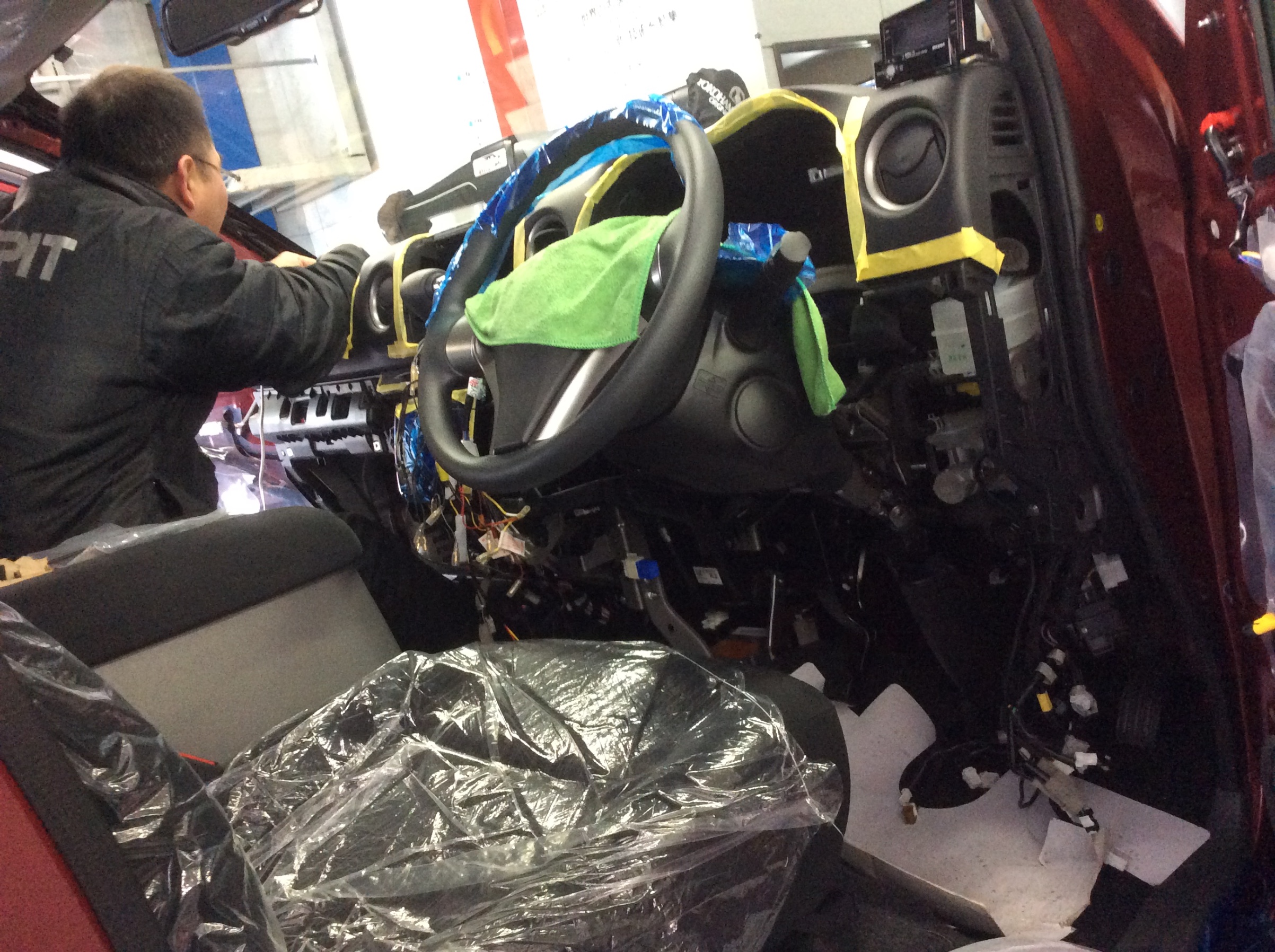 でも、フロント部分は色々作業があるので、シートカバーの取付けはまだできない様子です。