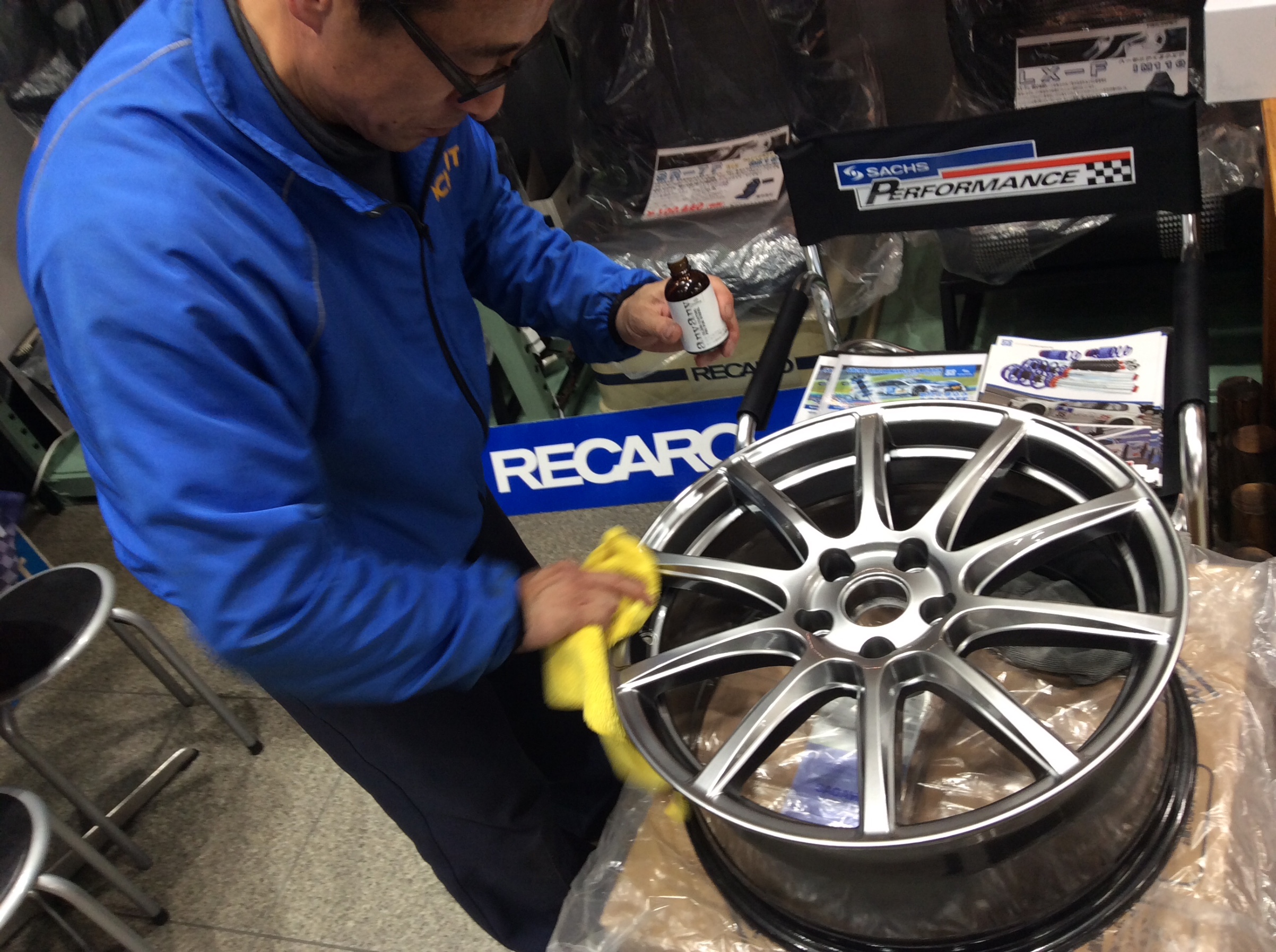 おススメした甲斐があって、またガラスコーティングを待っているアルミホイールが。
