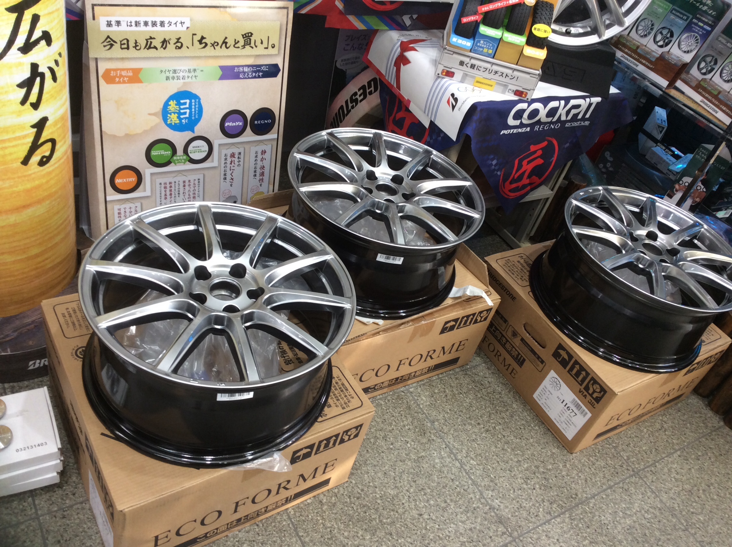 普段よりもたくさんのホイールを展示しております。