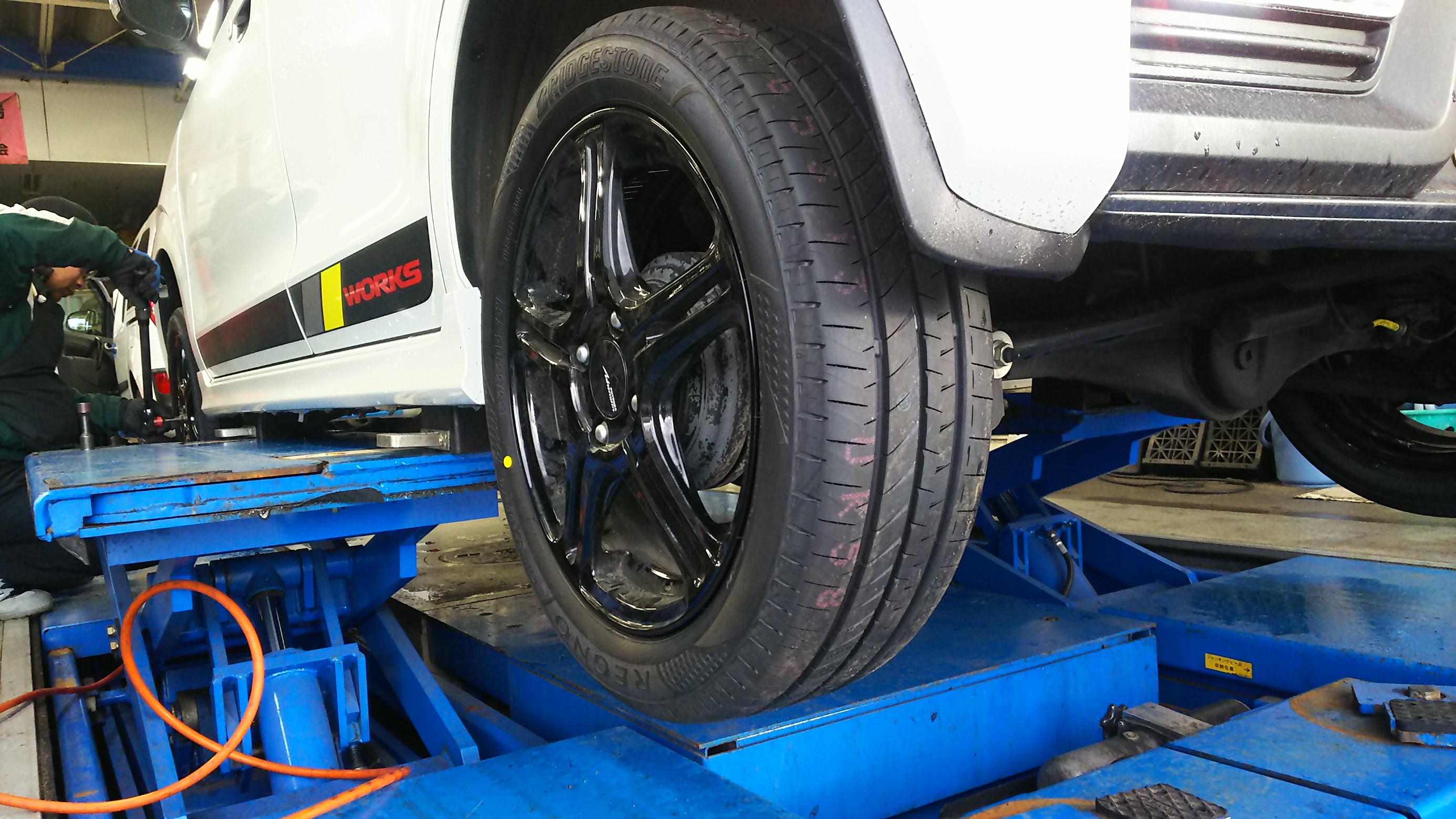 RE050が交換時期を迎え、また春からの転勤で移動距離が増えたとのこと。そこで今回のタイヤ選びでは「ワークスで少しでも快適に!」がタイヤ選びの最優先項目でしたので、迷うことなく「GR-レジェーラ」を装着となりました。