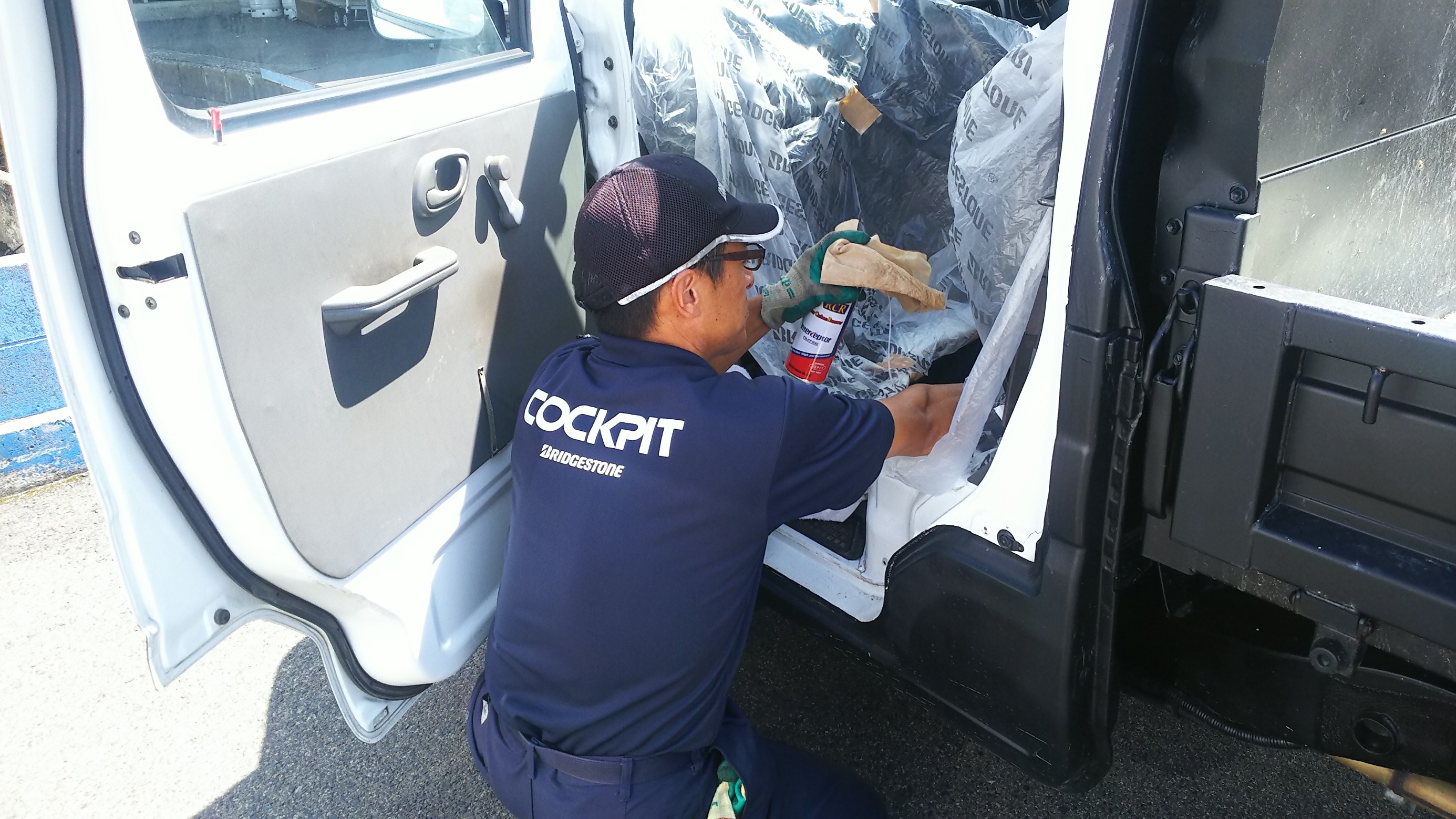 続いて、しっかりと養生を行い作業中なのは、キャリーダンプのお客様。
