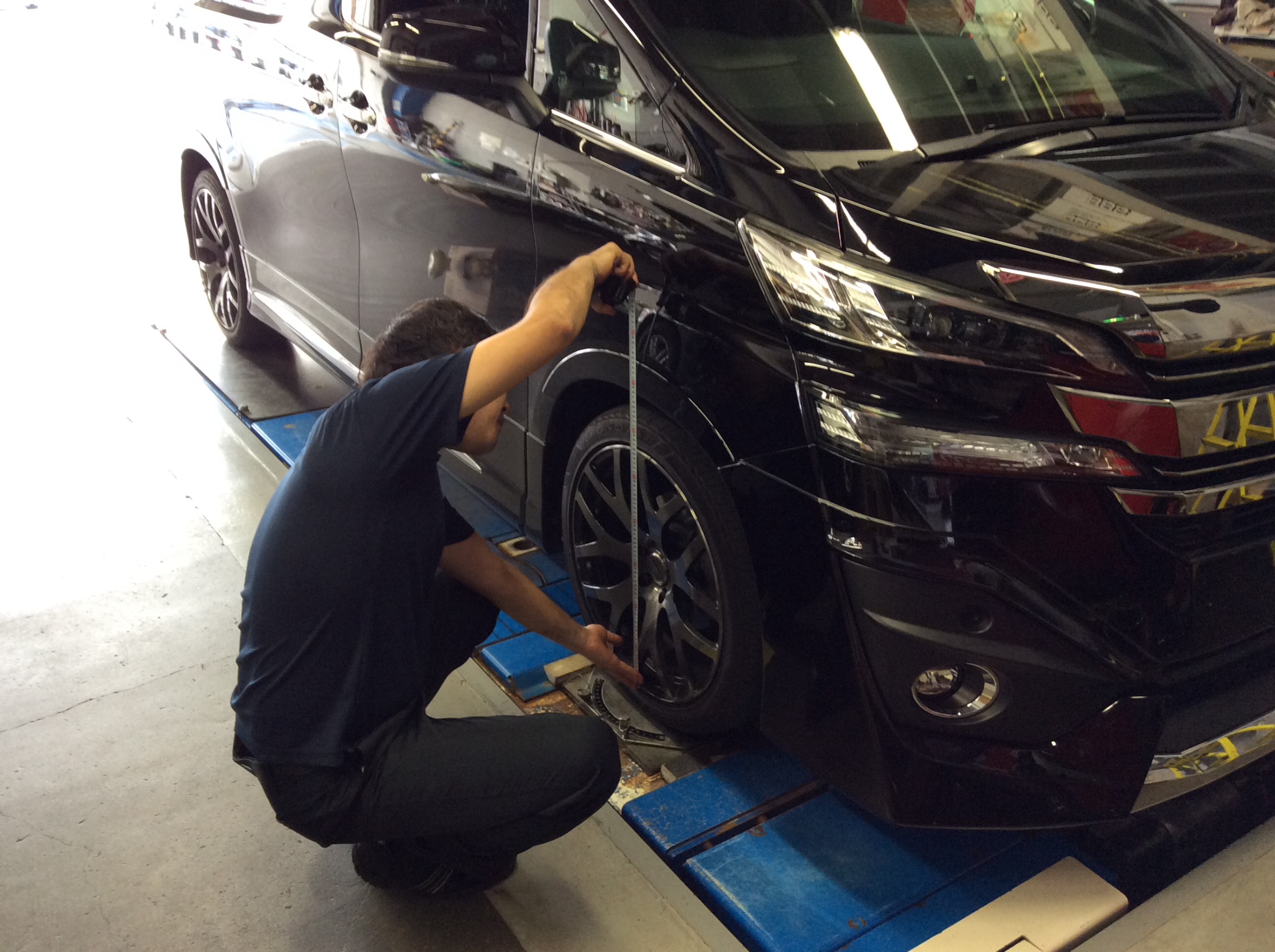 慣らし運転中にタイヤが偏摩耗しないようにアライメントも仮合わせしました。