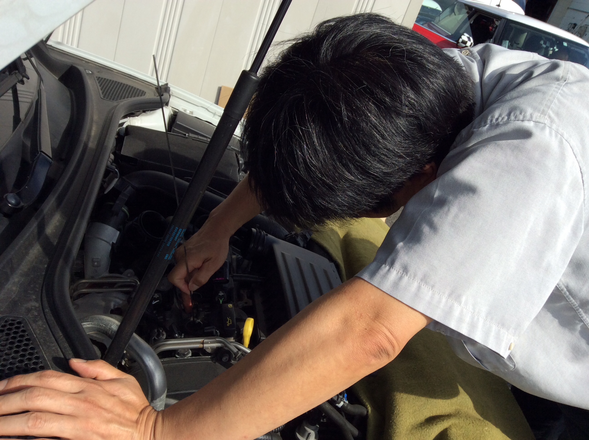 真剣にクルマを覗き込むスタッフ達!