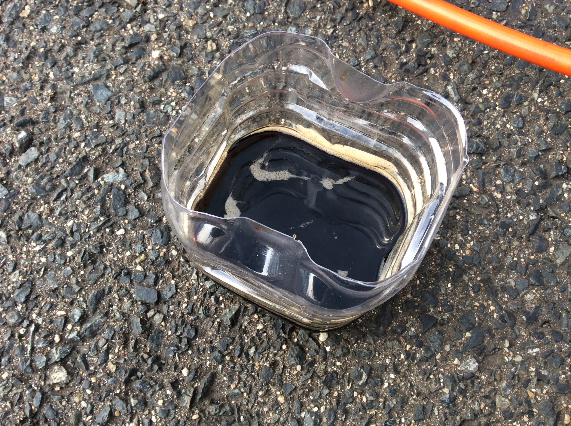 真っ黒になった薬液の中にはカーボンの汚れが固形になったツブツブもありました。