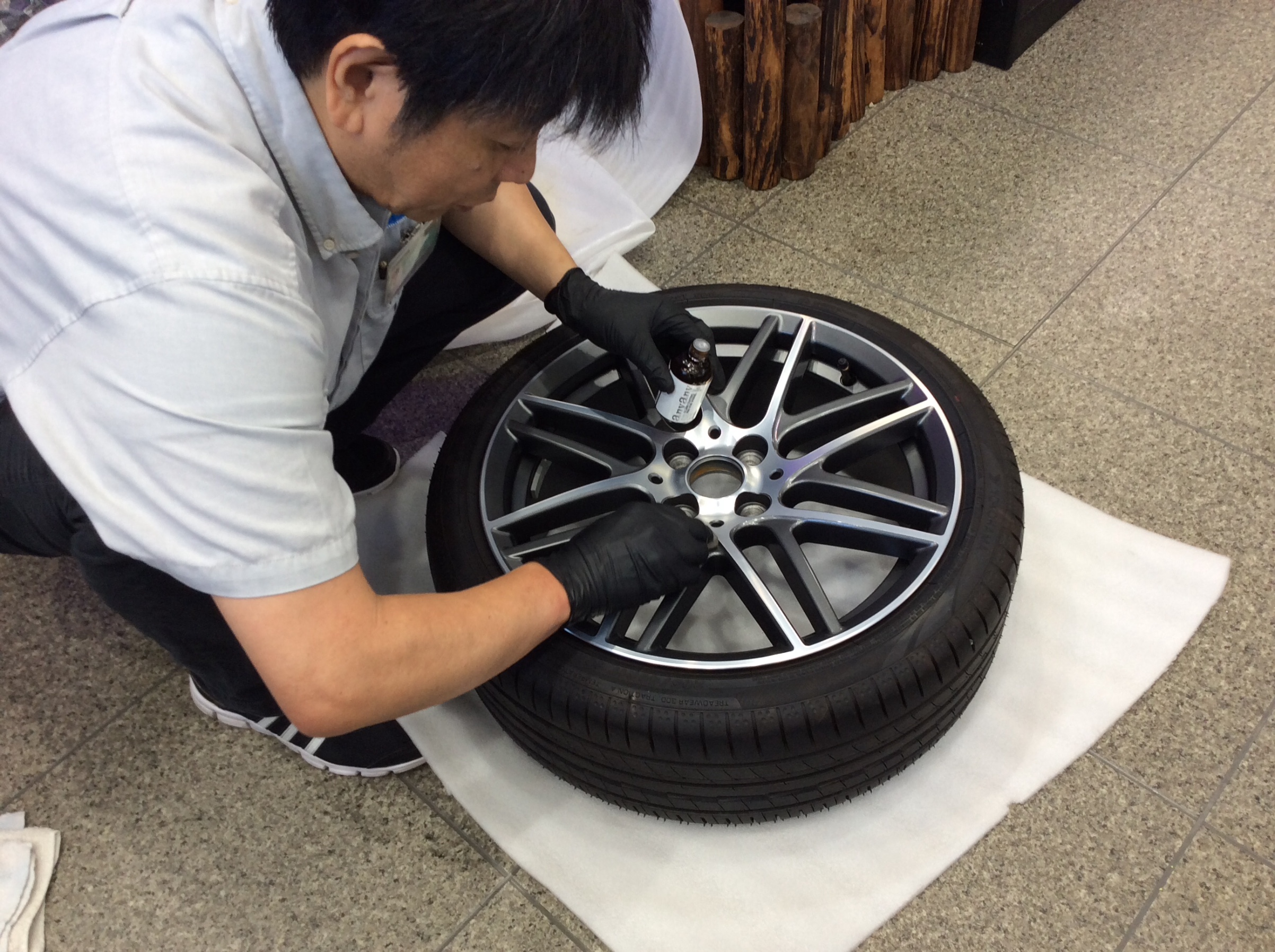 おなじみの光景は 〈ホイールガラスコーティング〉です。