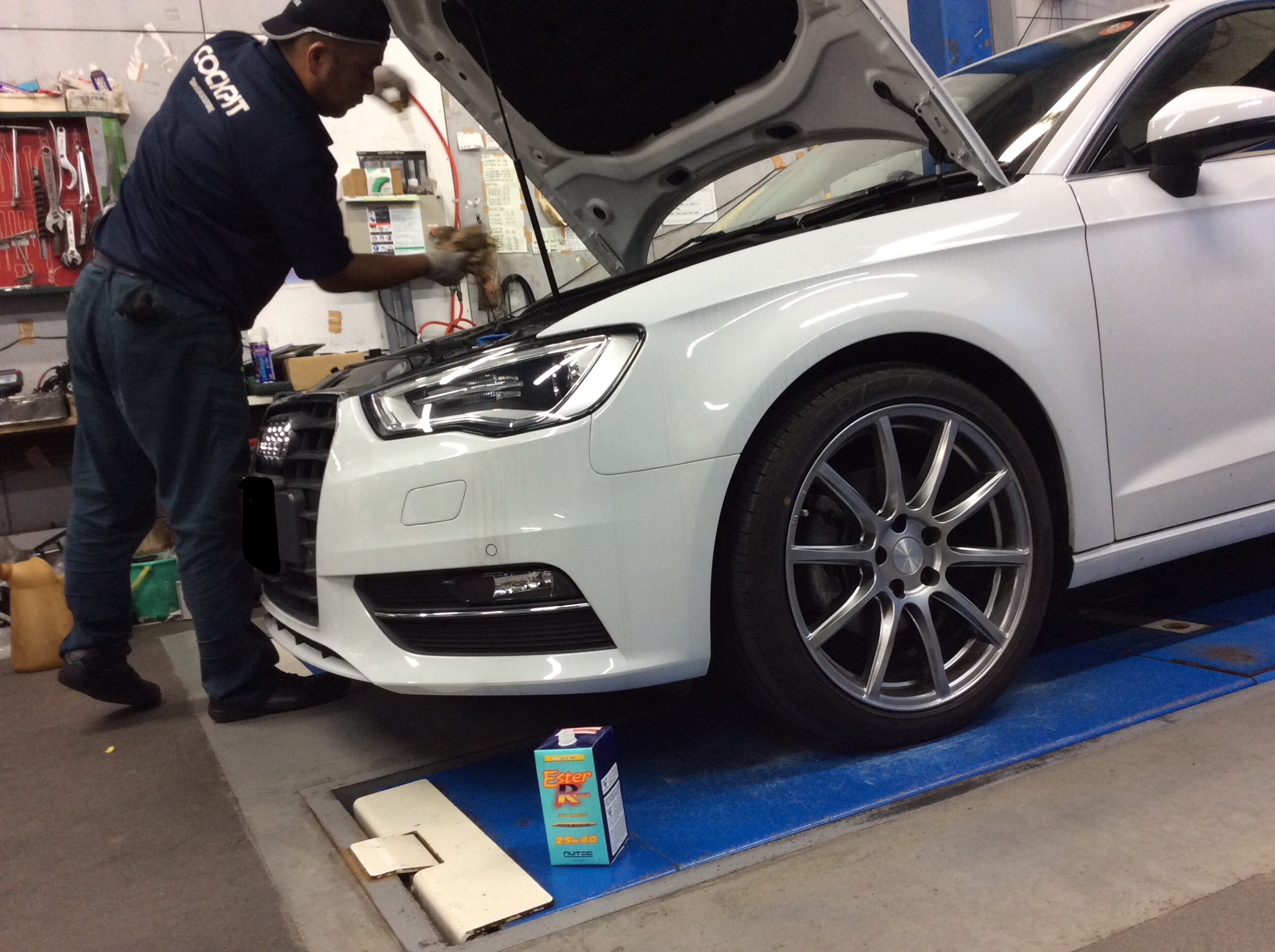 AUDI A3はこの後、仕上げのオイル交換です。