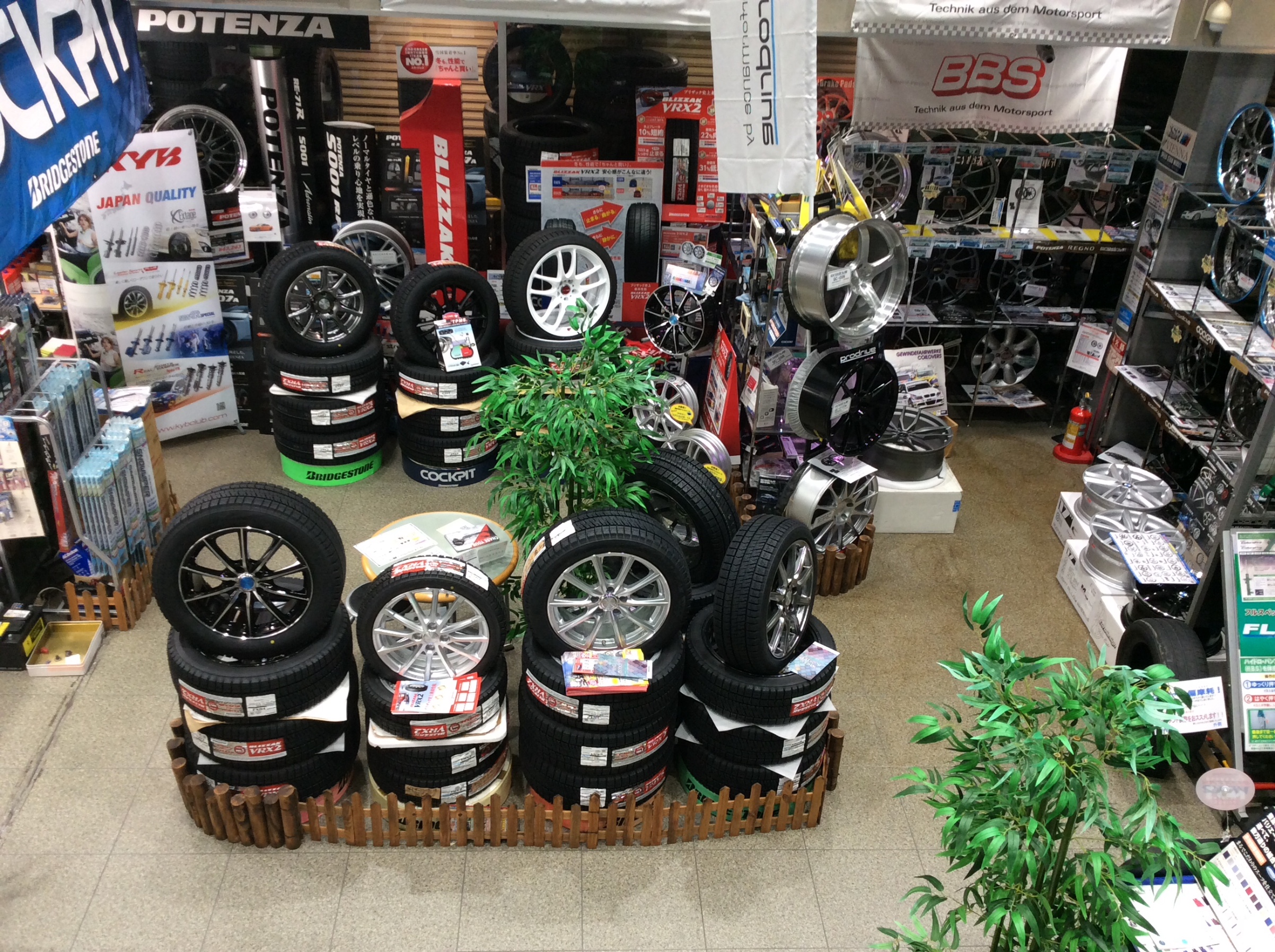 いろいろなアルミホイールも展示してあります。