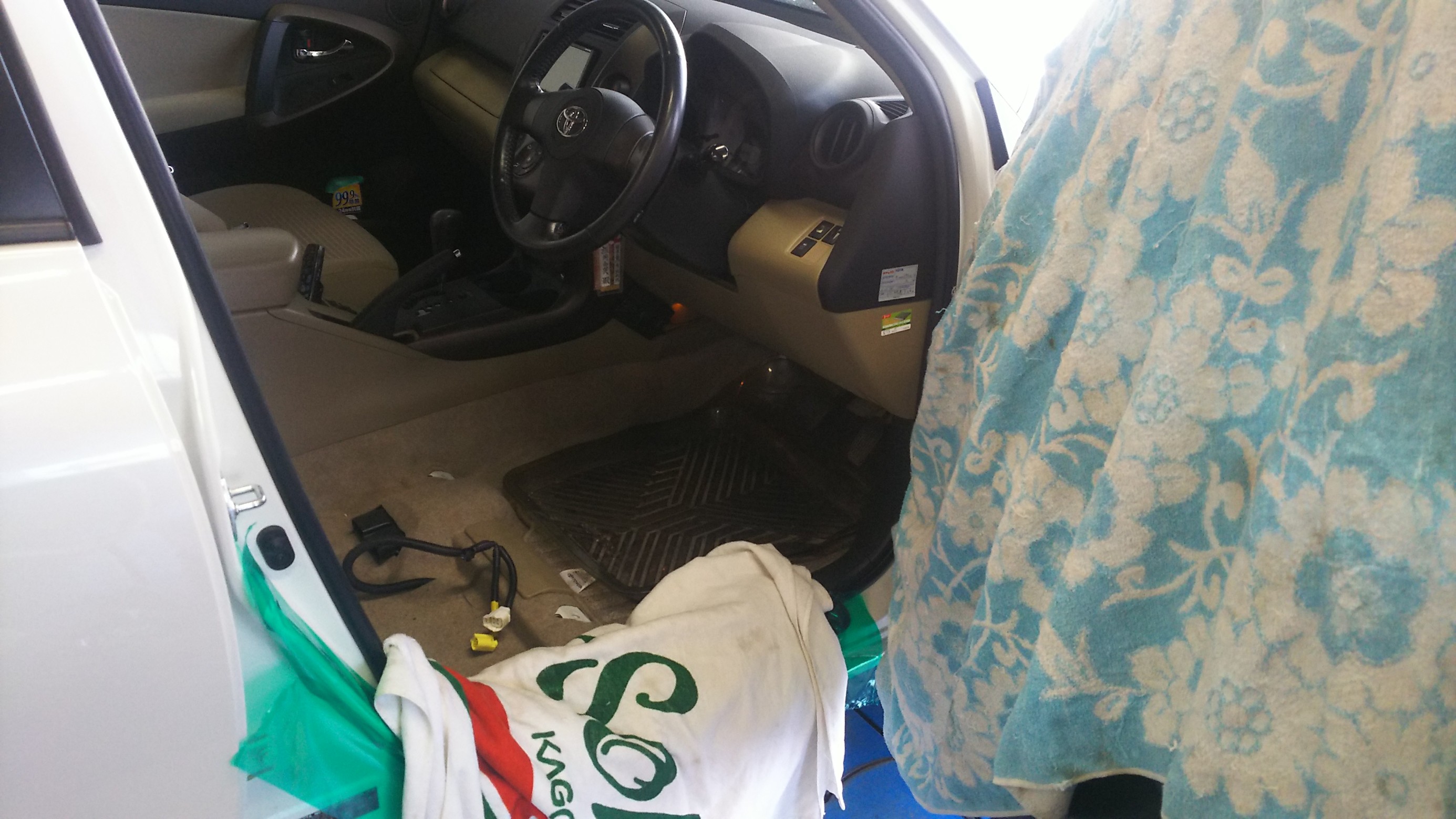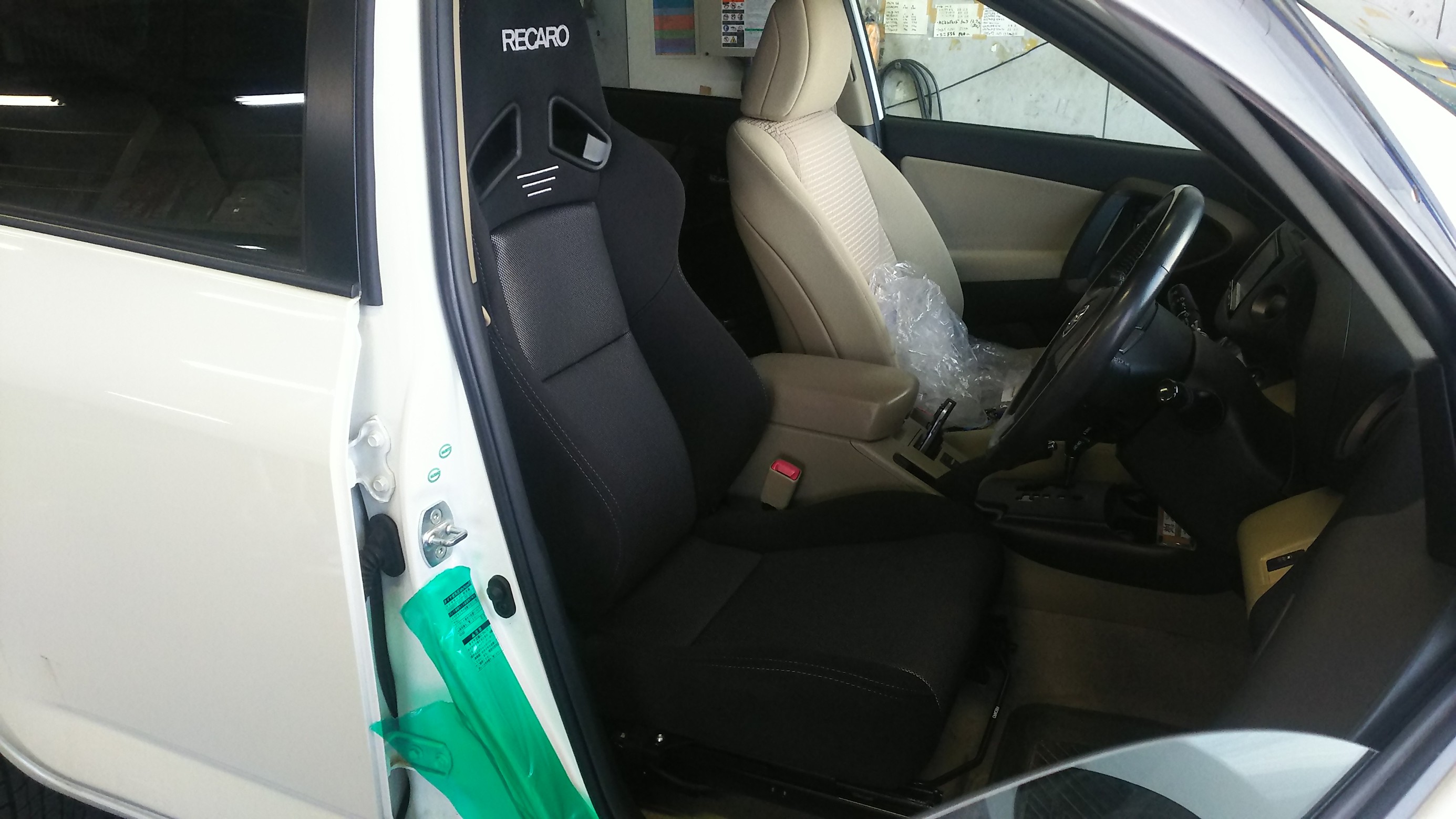 まずはしっかり養生を行い、ノーマルシートを取外し。