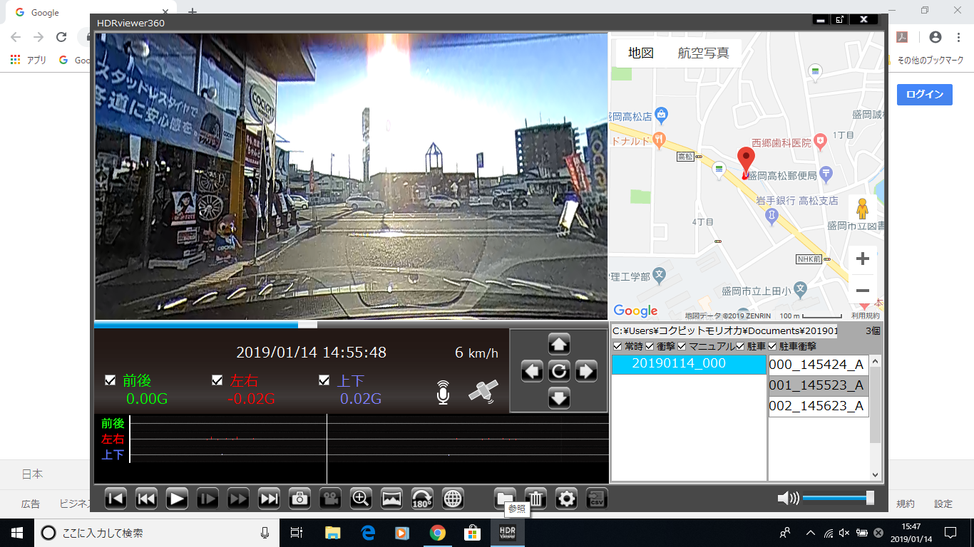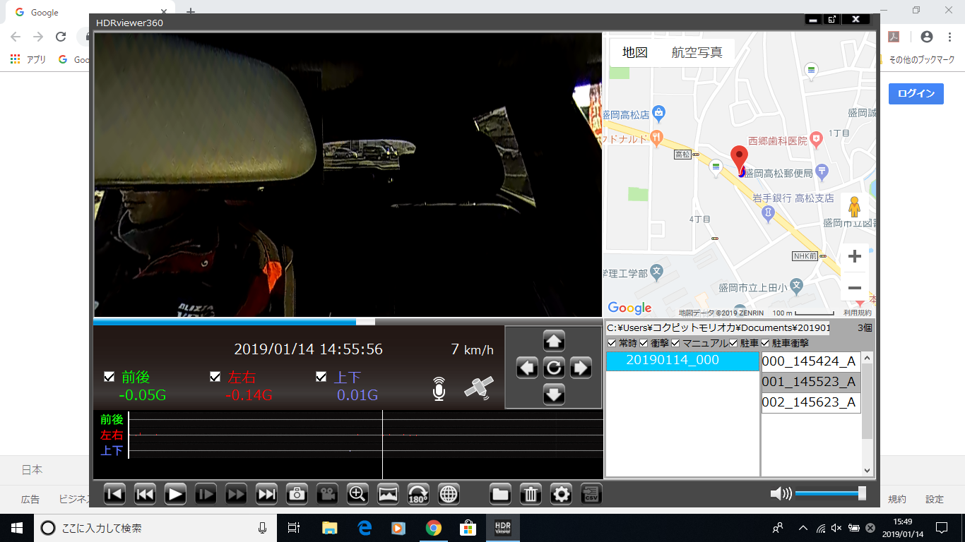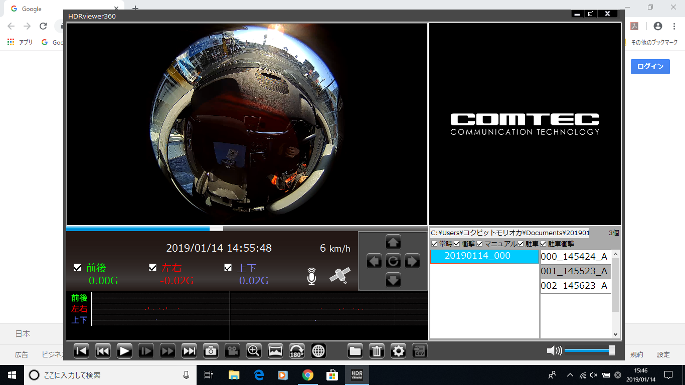 COMTEC 《 HDR360G 》にはドライブレコーダー本体にモニターが付いているので、録画の画像がすぐに確認することができます。
