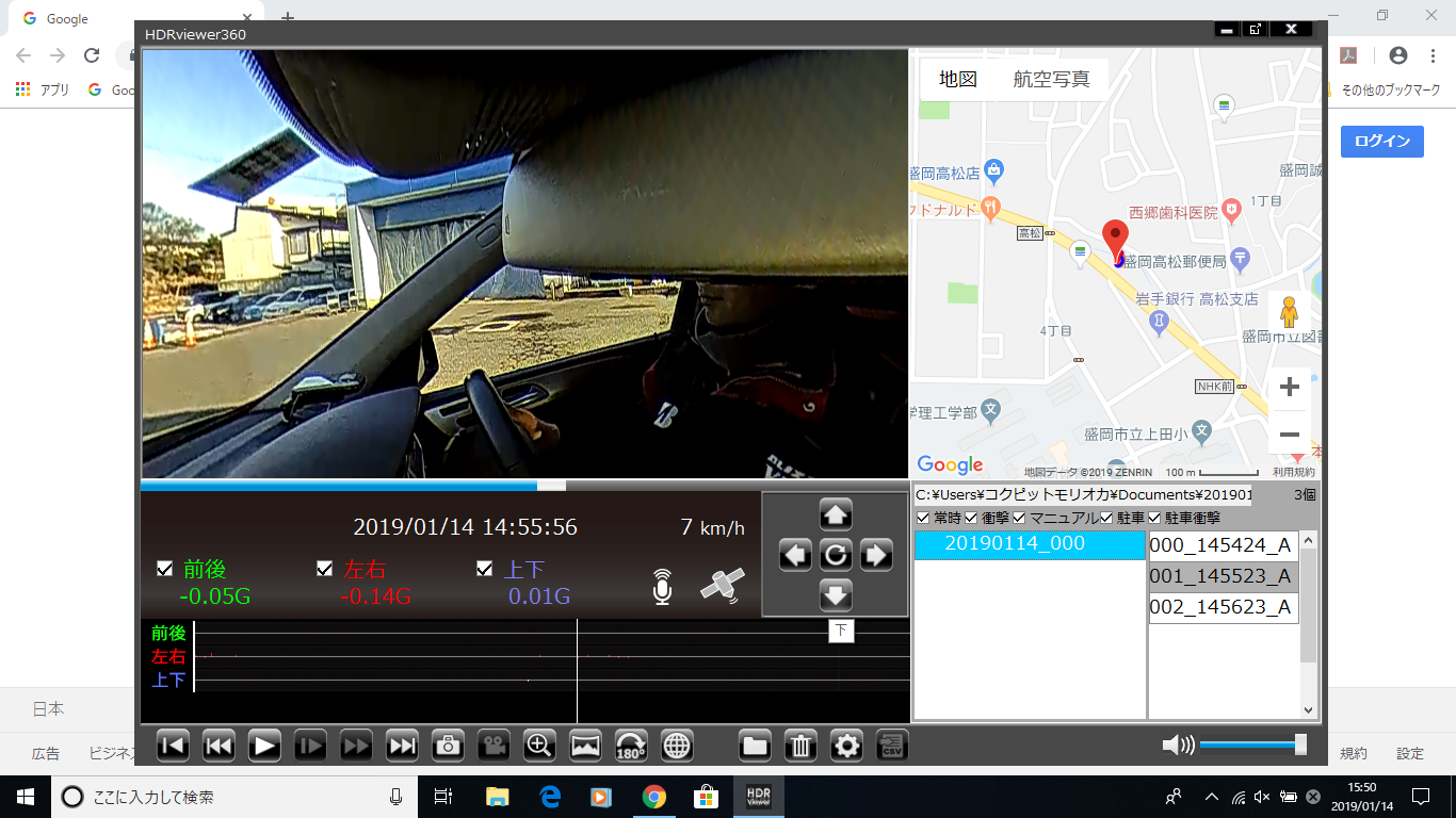 GPSが搭載されているので地図上に自車位置もちゃんと出てきます。