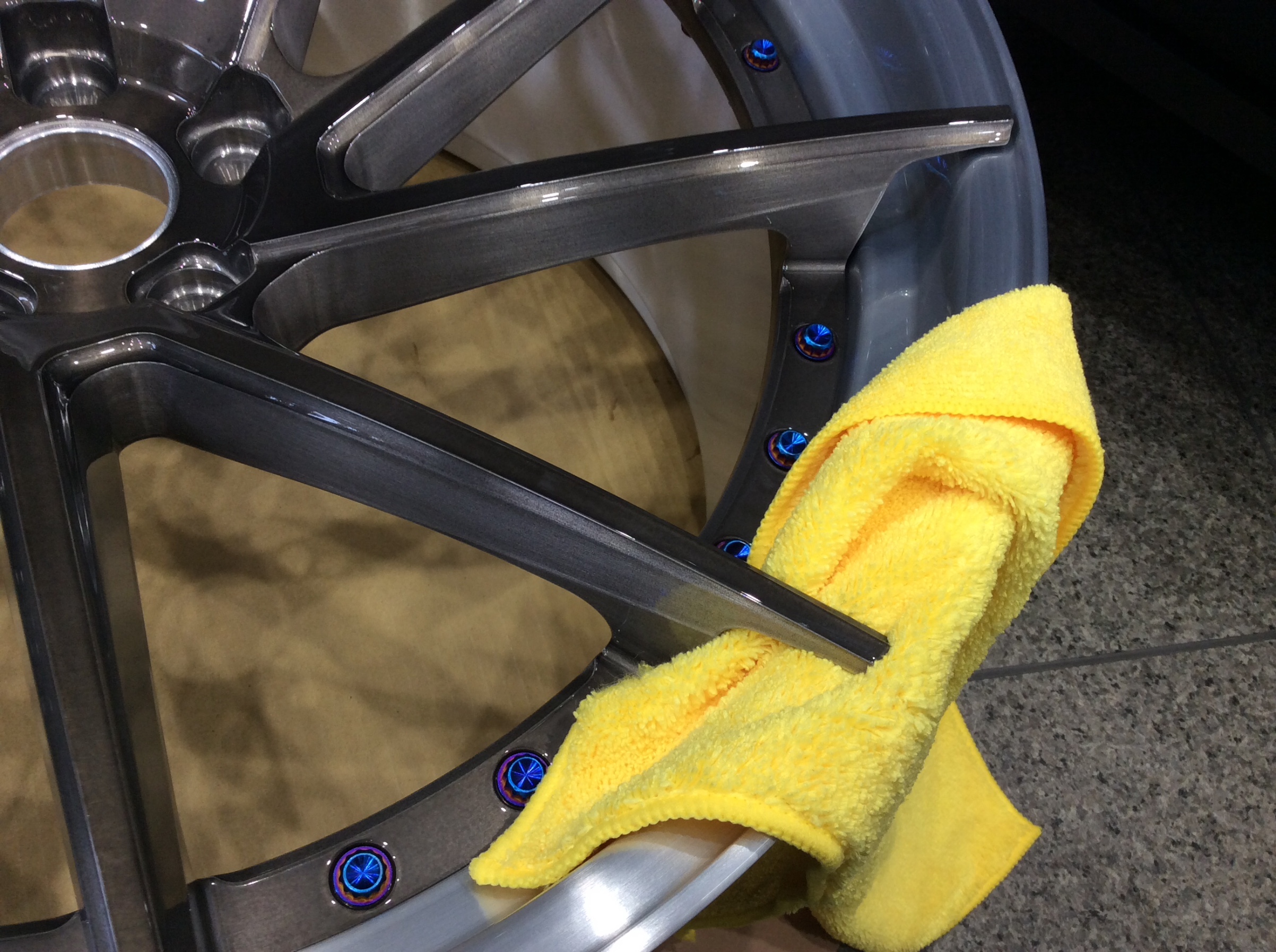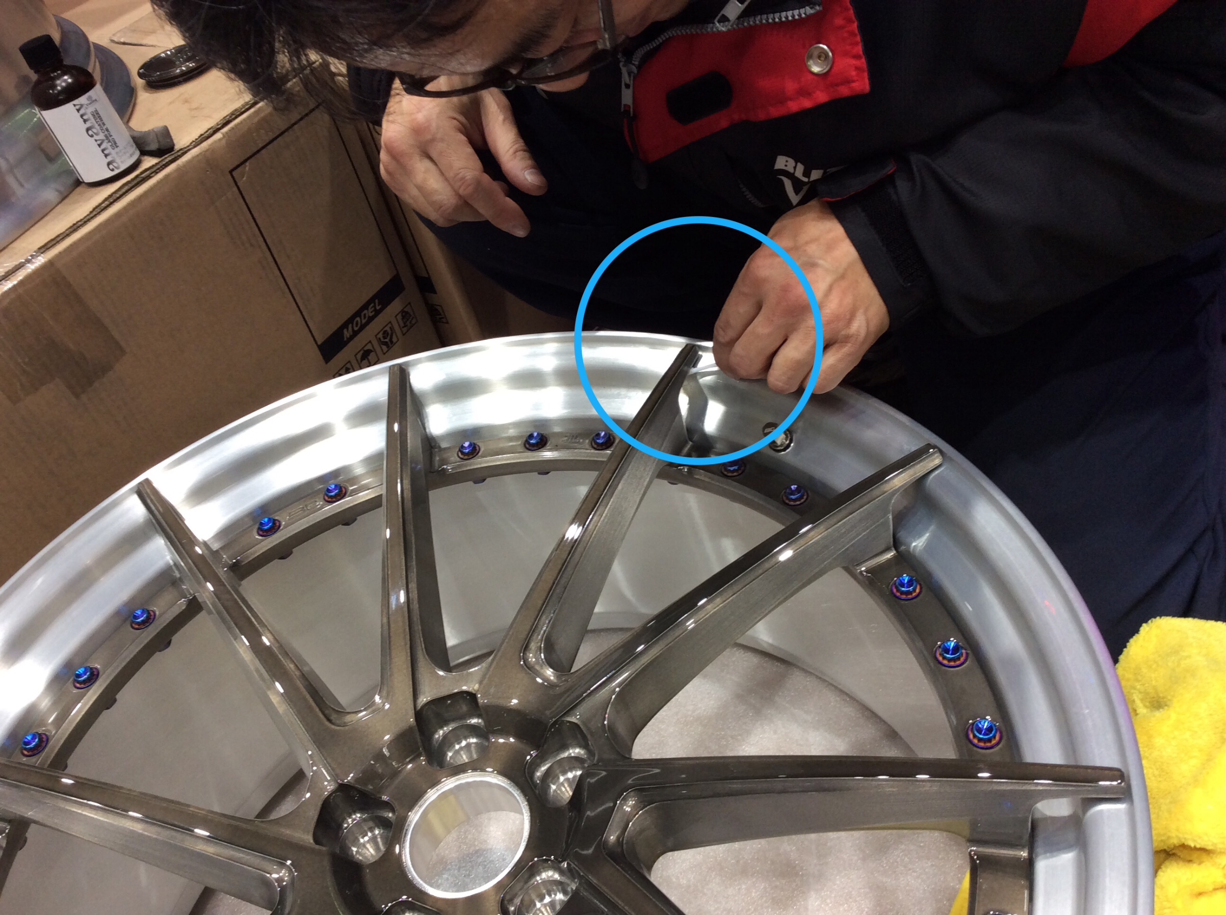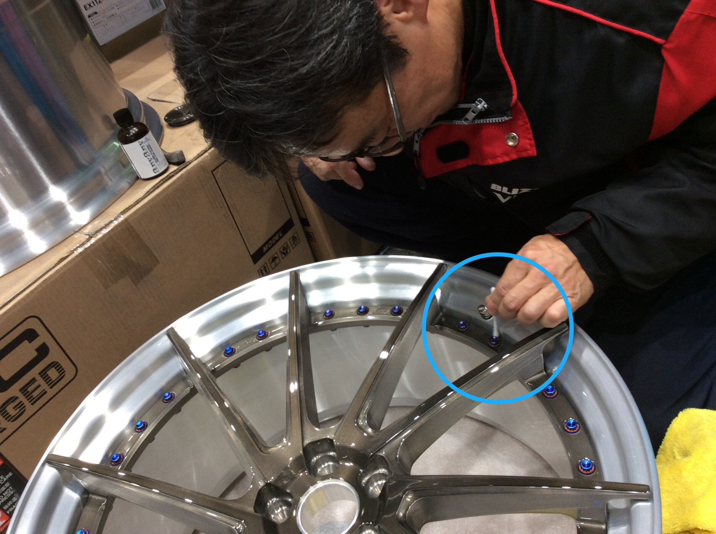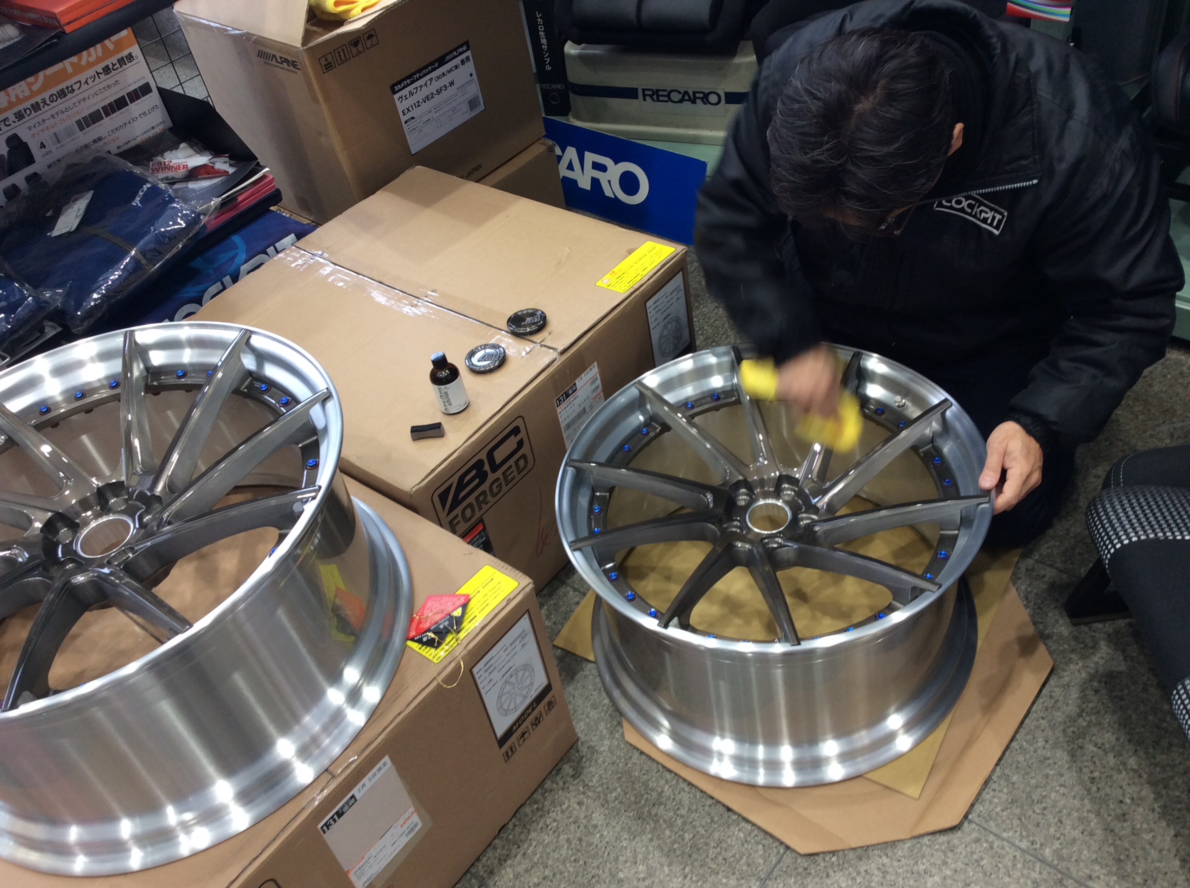 新品ホイールは施工しやすいのですが、装着後のホイールとなると施工前のクリーニングがちょっと時間がかかります。