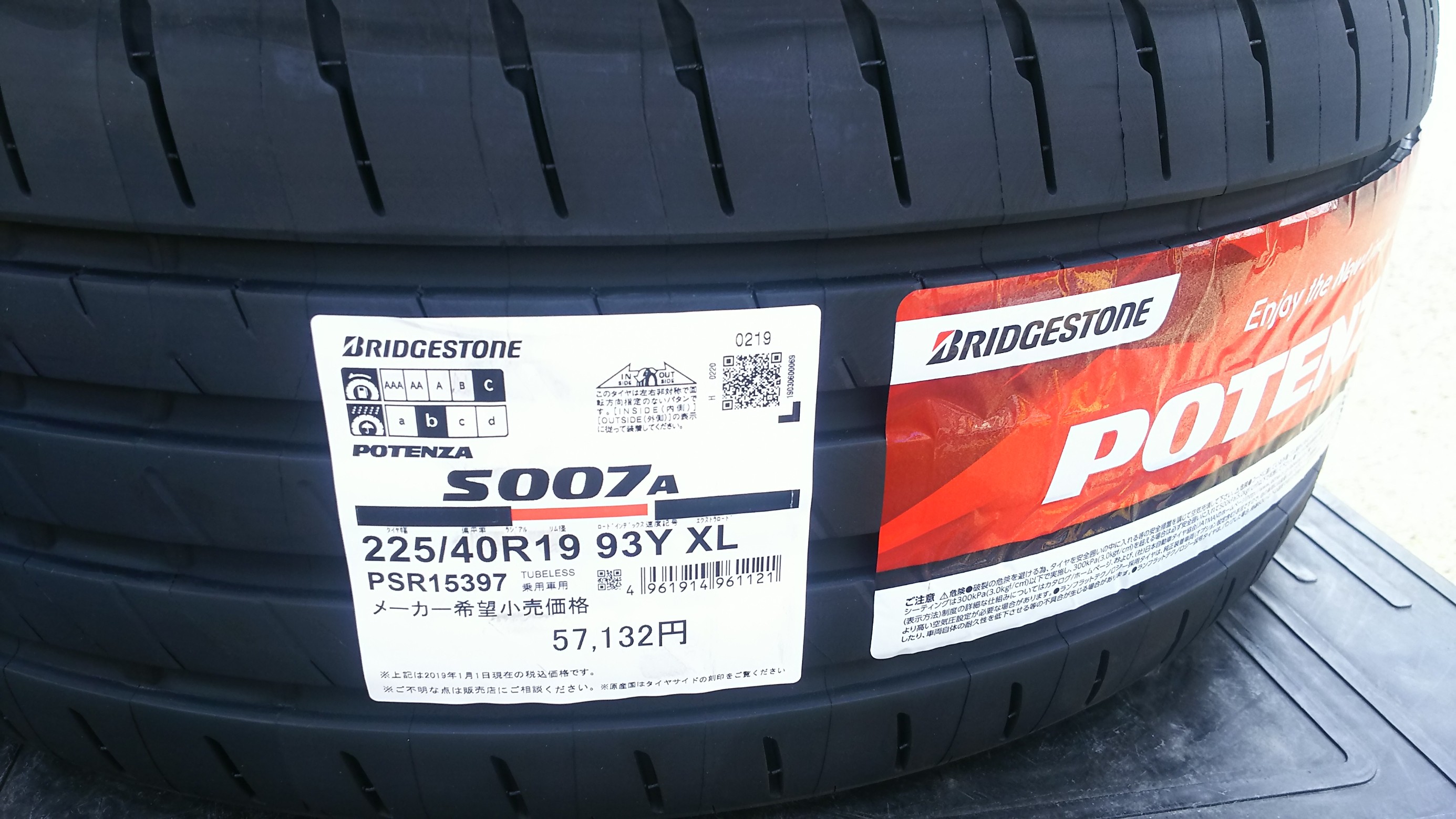 フロント・225/40R19。