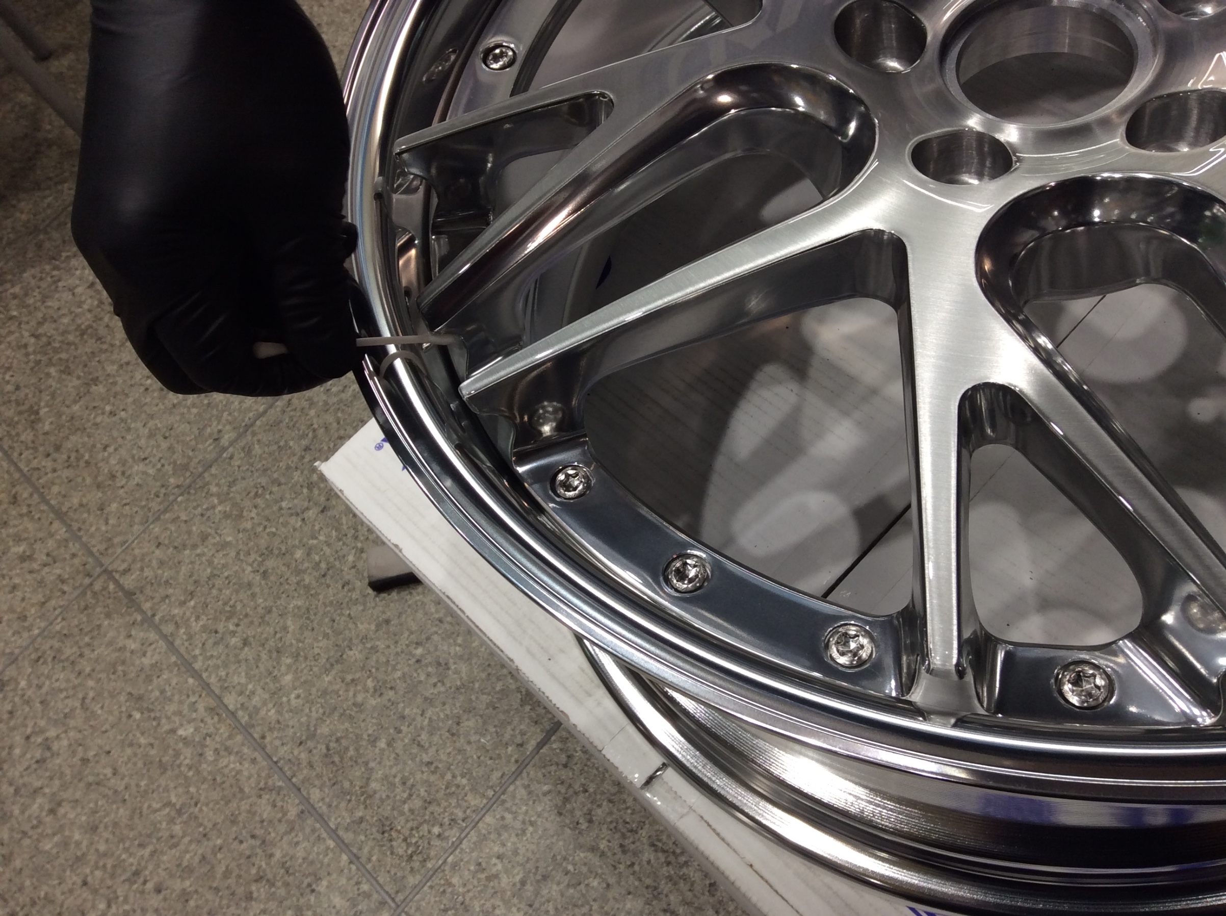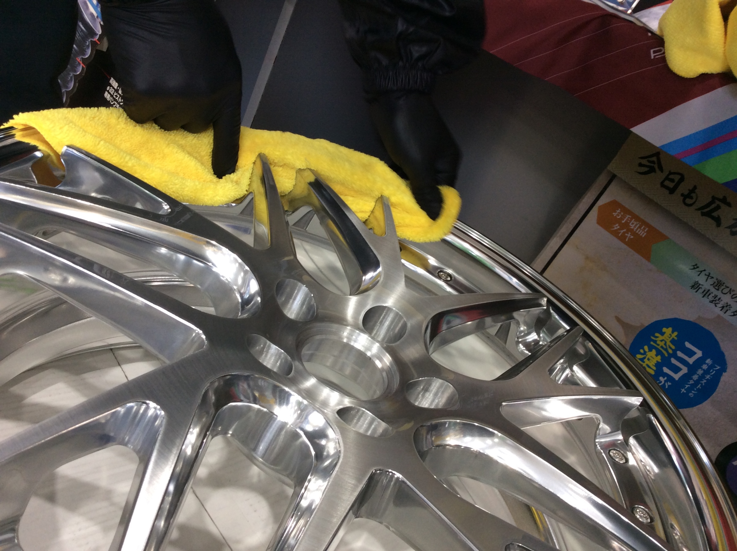 複雑なスポーク・リムの隙間もマイクロファイバーのタオルで丁寧にみがいて仕上げていきます。