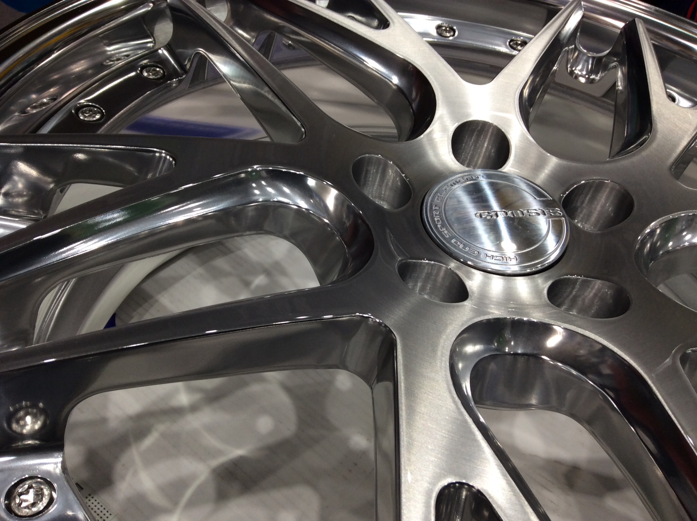 デザインのオモテ面を〈 ブラッシュド 〉で、スポークのサイドからの曲面を〈 バフポリッシュ 〉でつなげ反射し合うスポーク同士やリムで複雑な立体感を出しています。