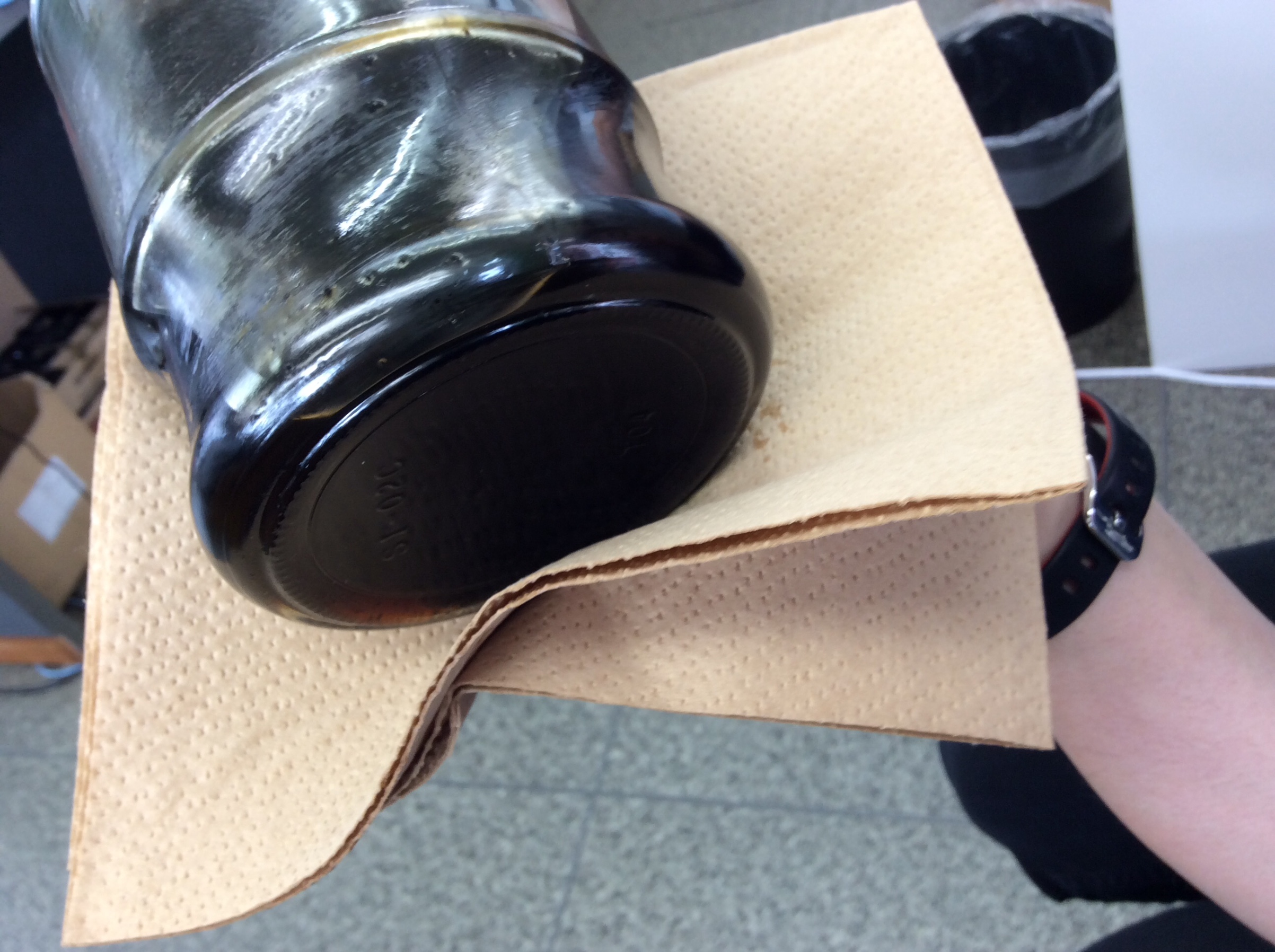 中にこびりついていたカーボン汚れが取れて、真っ黒な液剤の中にツブツブの固形になった汚れも見えます。