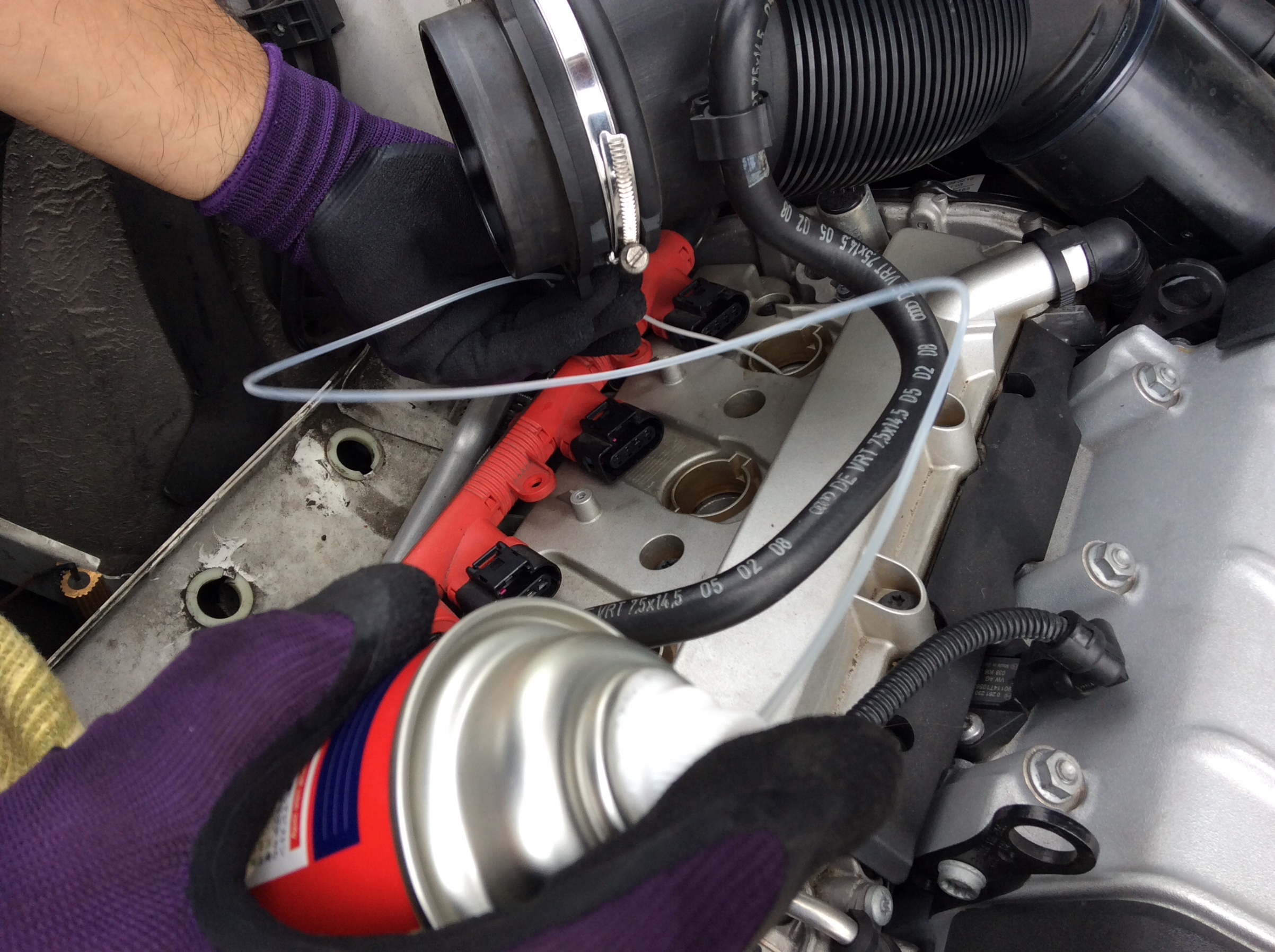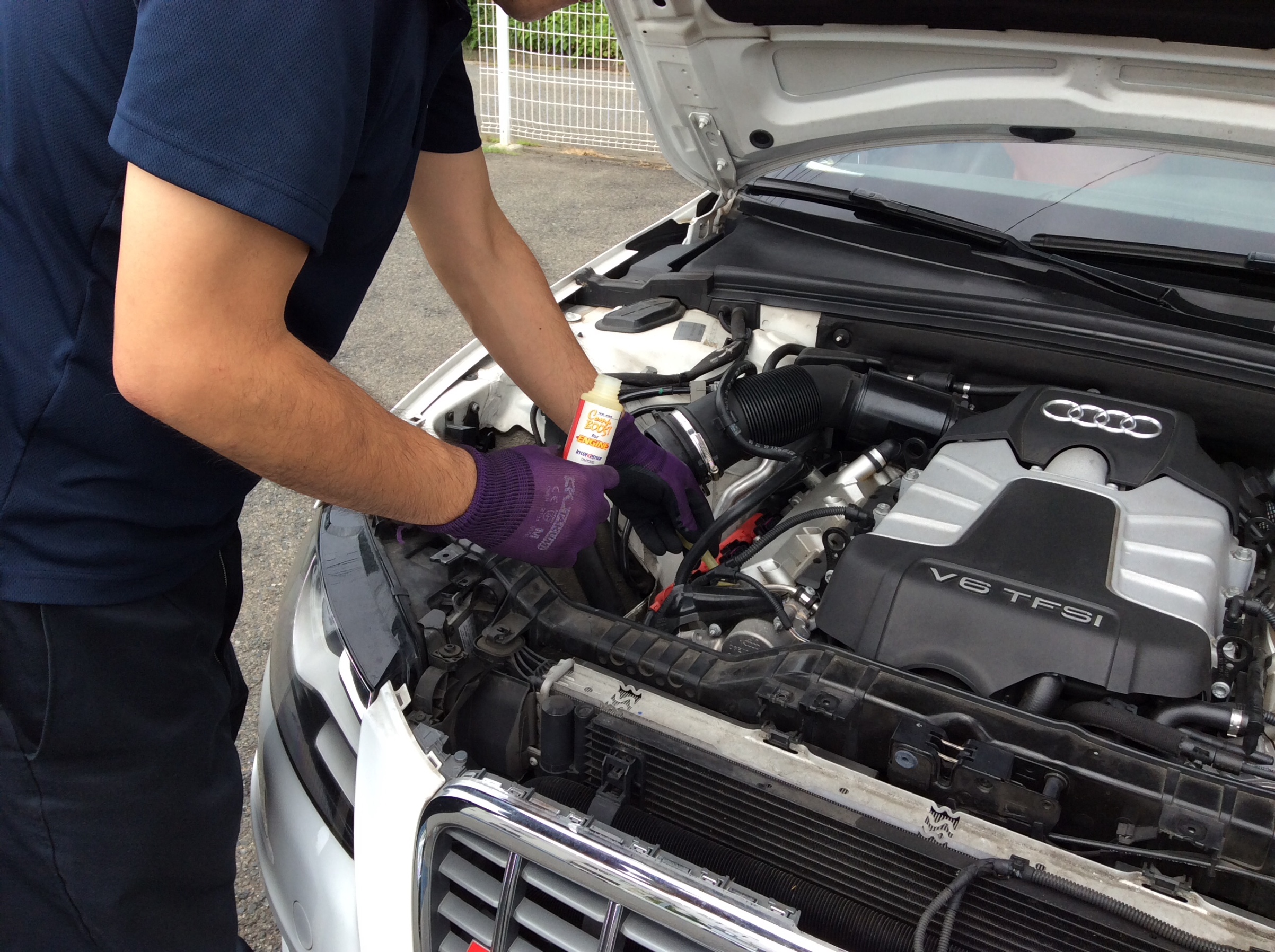 エンジンが温かいうちに『 NC-900 』をカーボン汚れに直接浸透させることで、熱と液剤の化学反応が進みます。