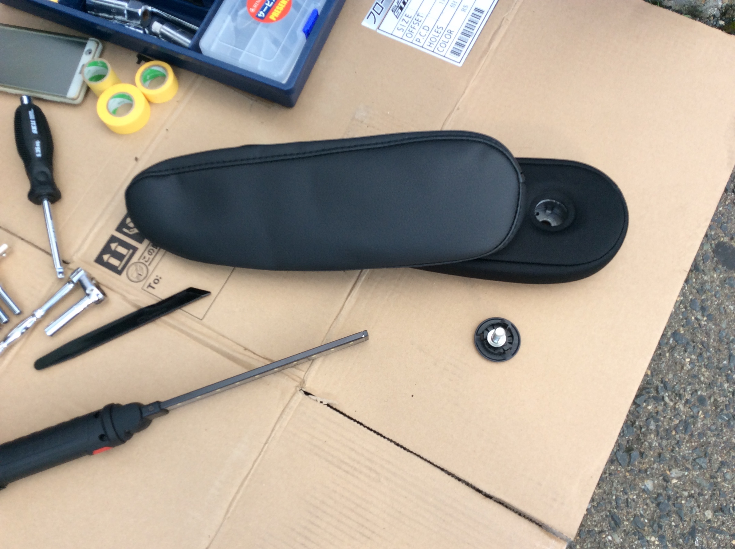 一旦シートからアームレストを外してカバーを装着していきます。