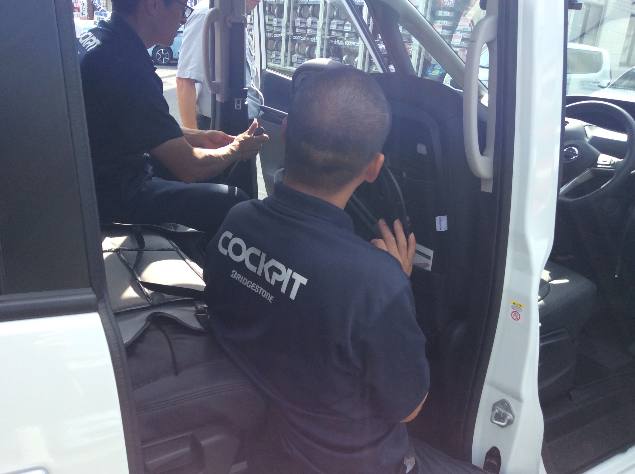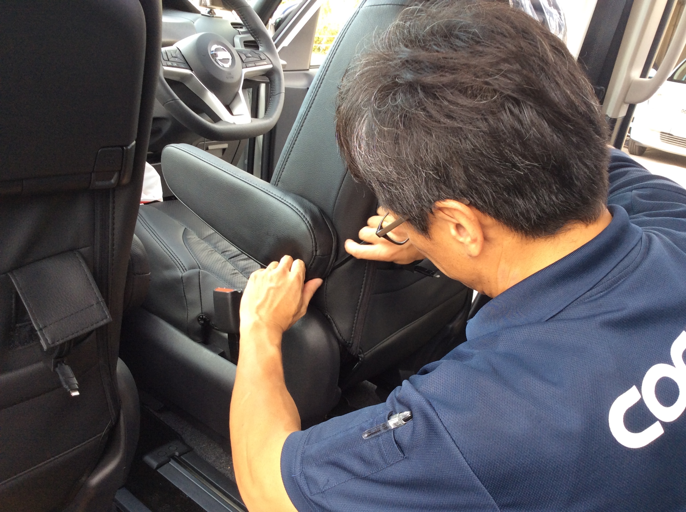 シートカバーの装着です。