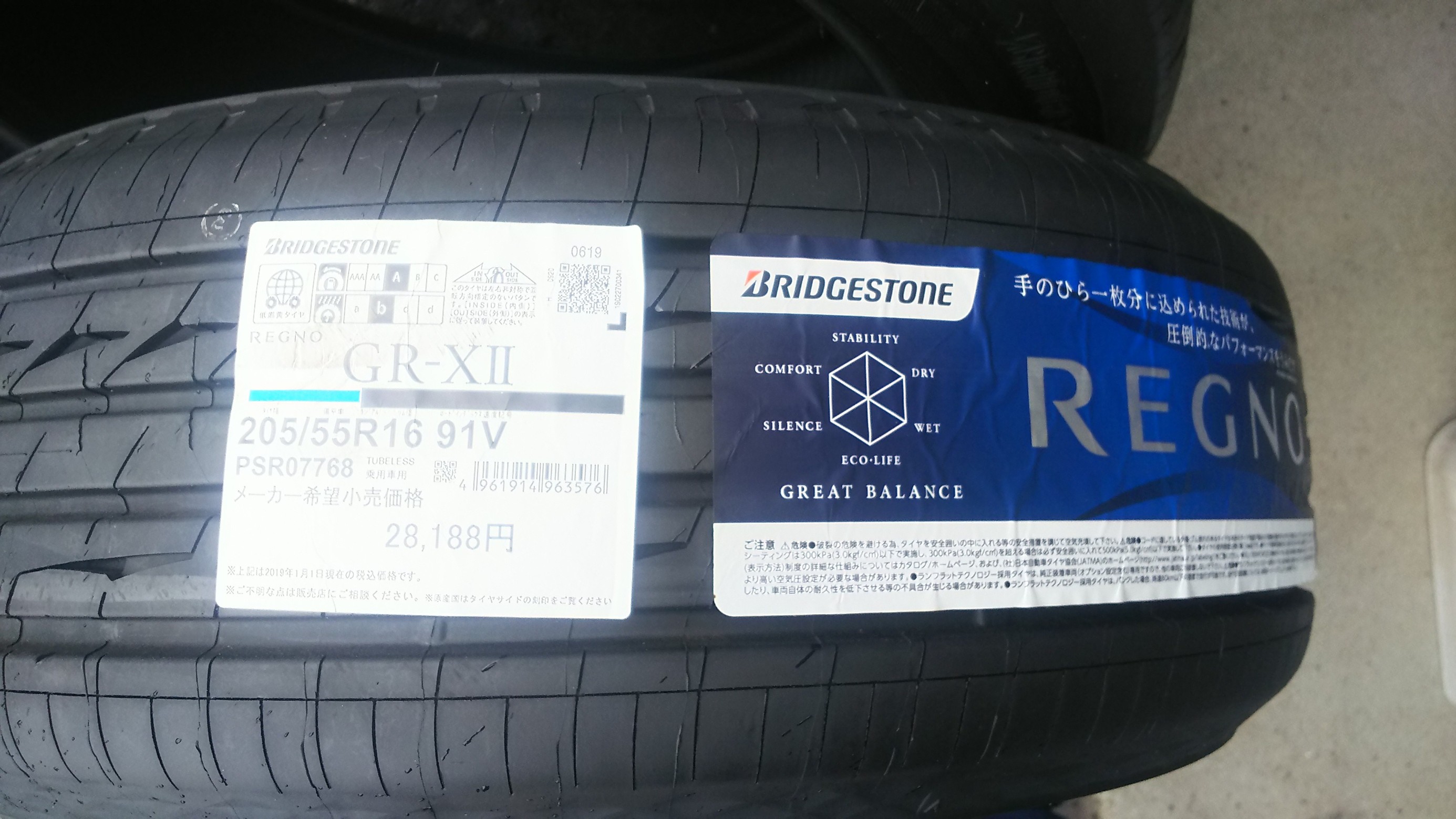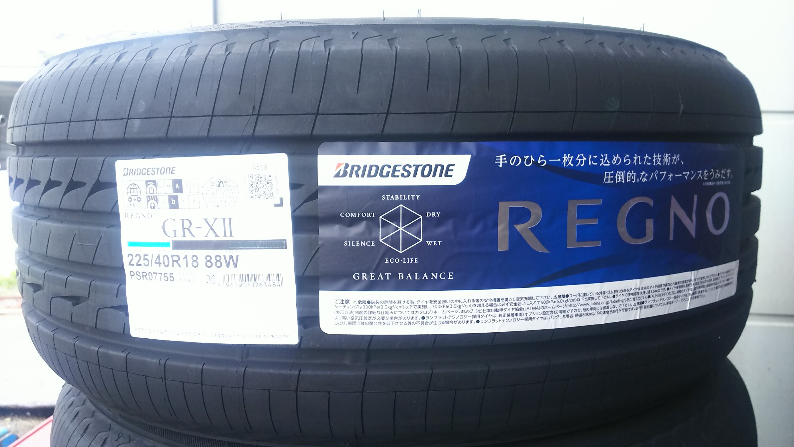 交換前のタイヤはスリップサインが出る寸前の状態でしたので、オリジナルサイズの「REGNO GR-XⅡ」18インチをセット。