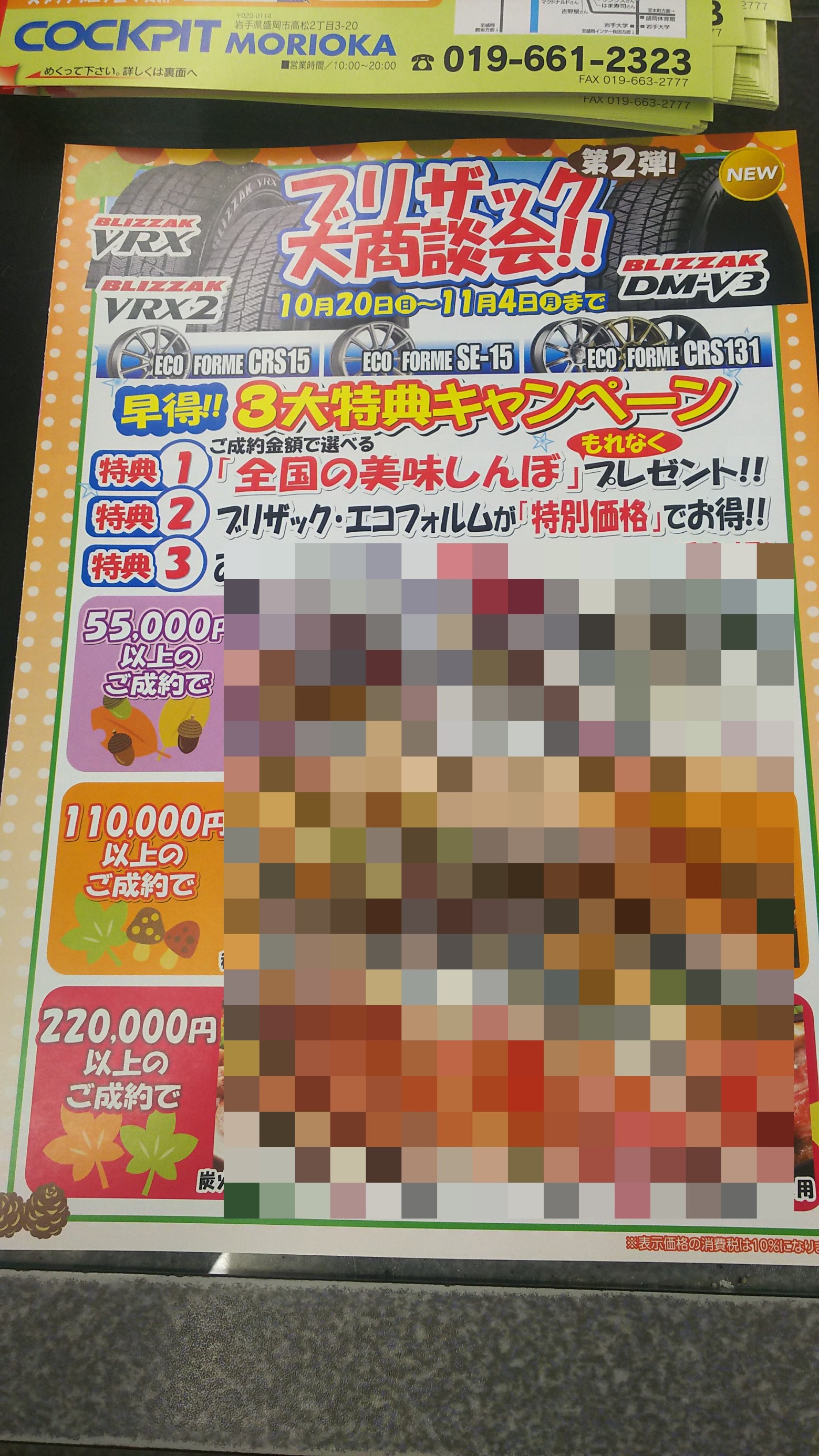 台風などの影響で予定より遅れてしまいましたが、「ブリザック大商談会」第1弾に続き、第2弾の 様々な情報を載せたダイレクトメールが完成いたしました!