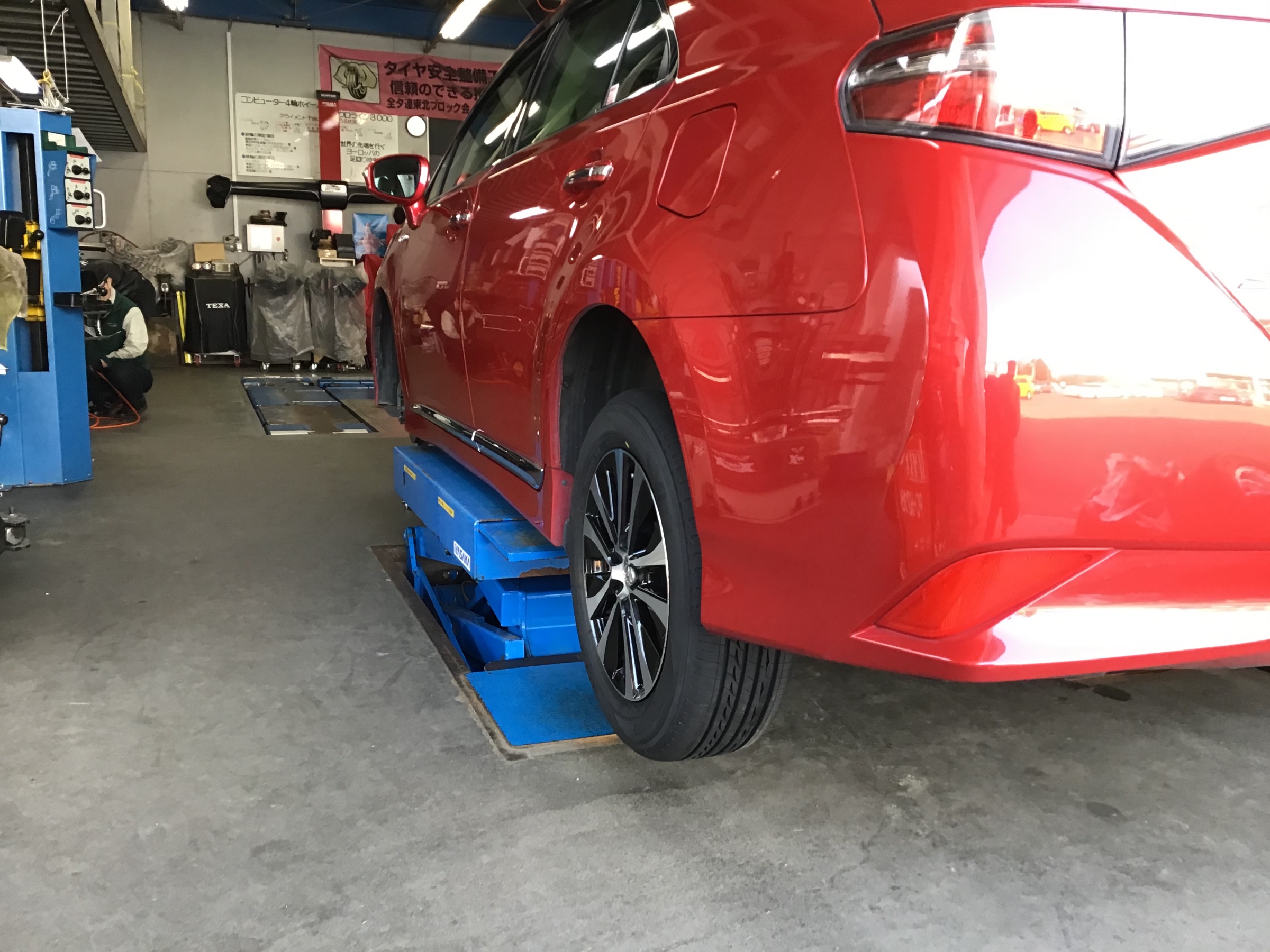 そして、今回も新しいタイヤを装着後、200〜300kmほど慣らし走行してからアライメント調整の作業を実施します。