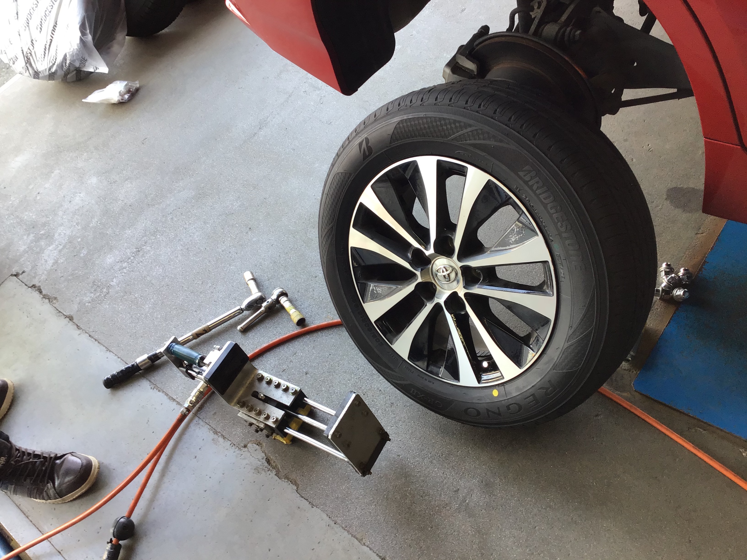 運転していて特に気になる症状は無いようですが、走行距離も進んでいるので、お車の現状の確認のためと新しい『REGNO』の性能を発揮させるためにもしっかりと合わせておいた方が良いと思います。