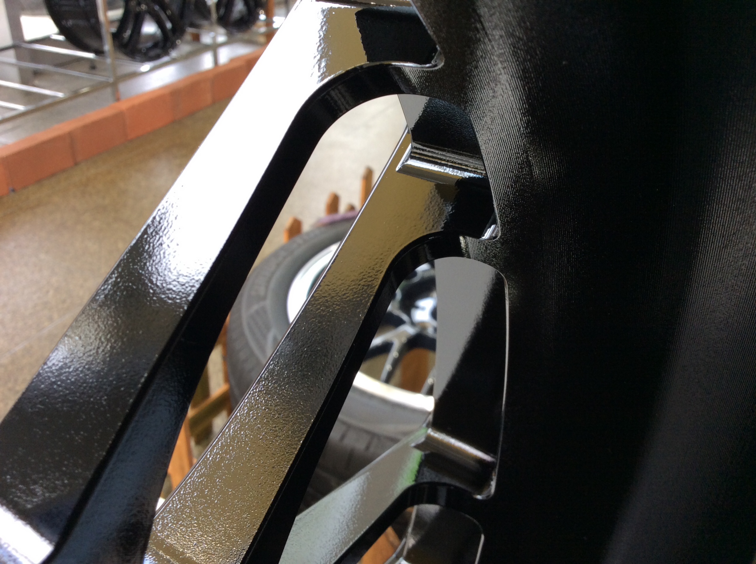 裏側から見るとスポークを細くして軽量化を目指しているのがわかります。
