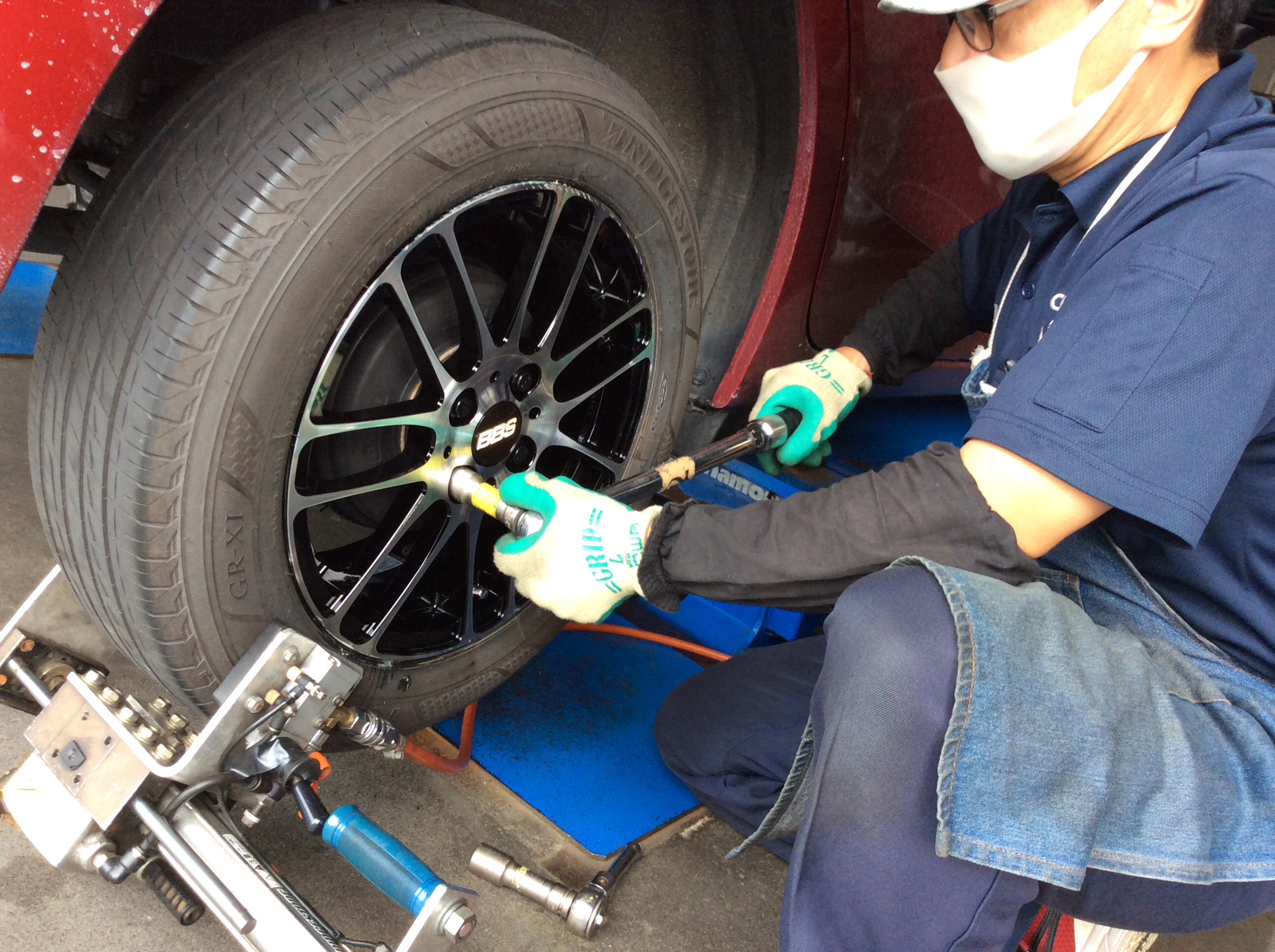 《 anyanyホイールガラスコーティング 》を施工した BBS 「 RE-L2 」はタイヤを組み込んで、もちろん 『 B-システム センターFIT サービス 』で装着します。