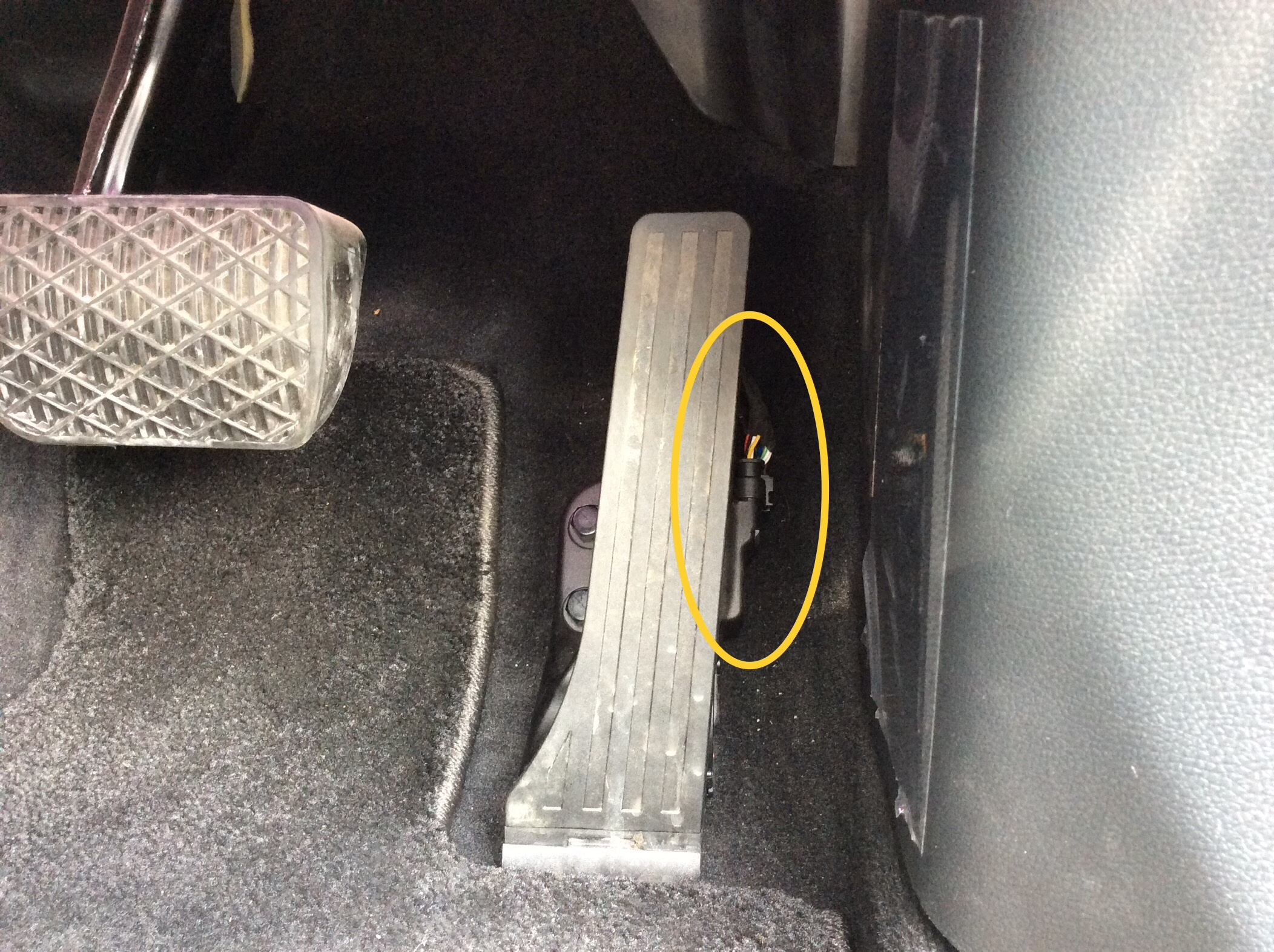 配線の場所はアクセルペダルの近く・・・